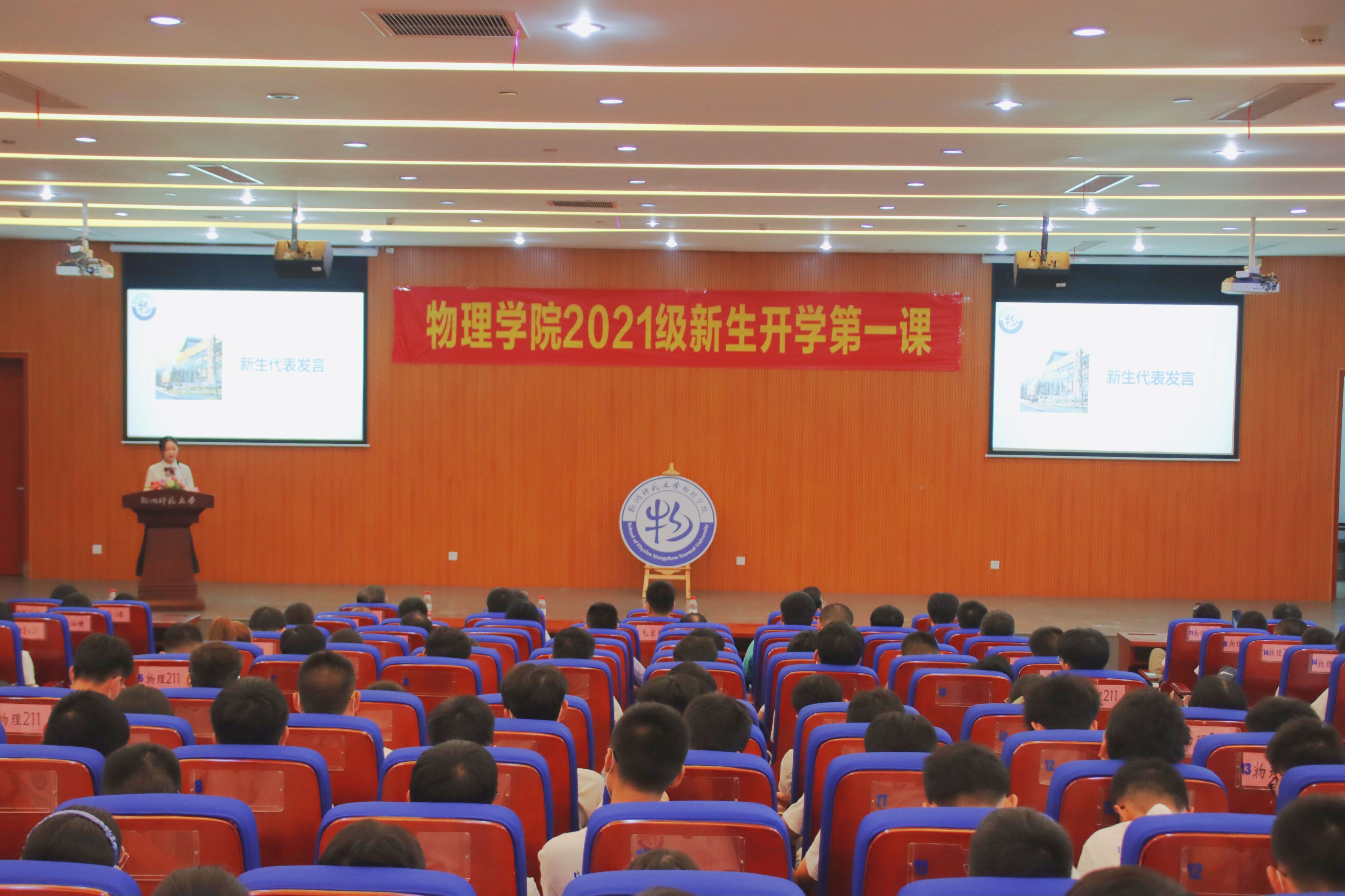 院徽设计者李炳伟老师介绍了院徽的设计理念和内涵。精彩的诠释,让全院新生认识到了简洁院徽背后的深刻内涵,更体现了物理学人追求卓越的精神品质。