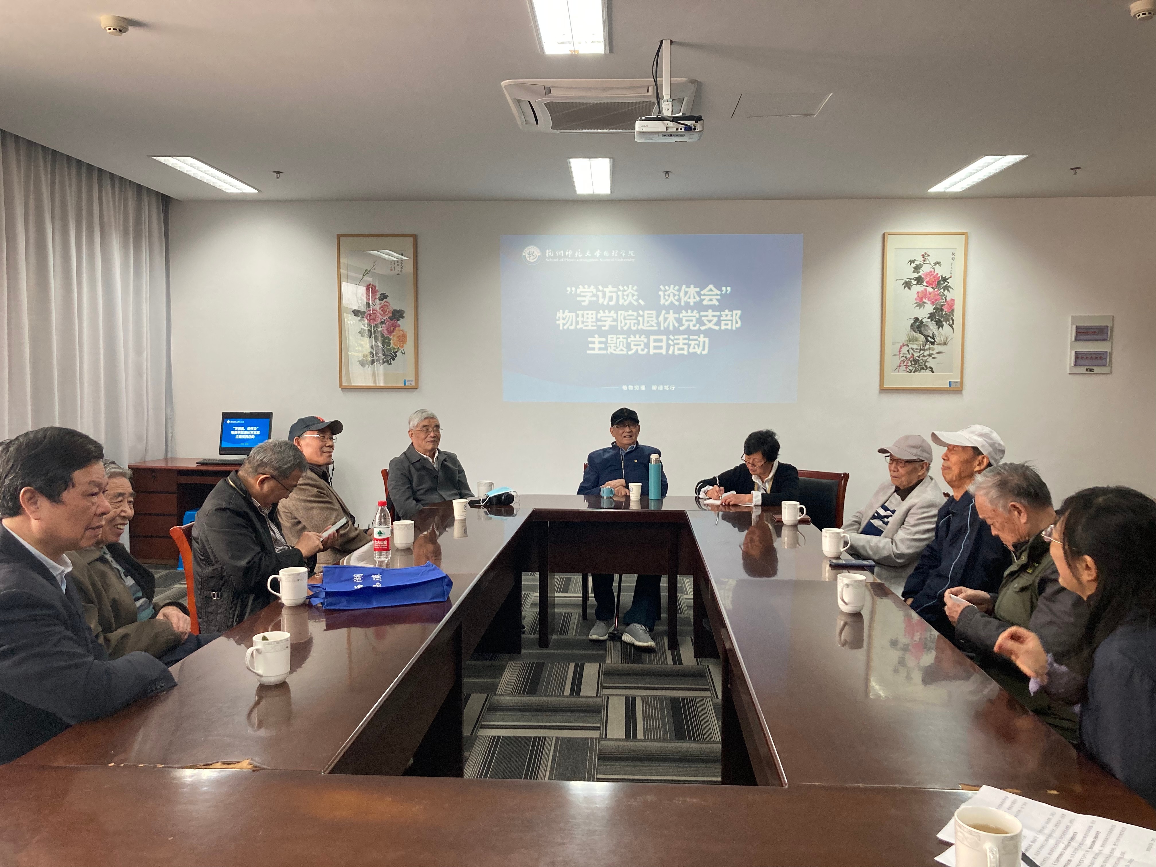 1026日,理学院退休教工党支部开展“学访谈、谈体会”主题党日活动,学院党委书记和退休支部老党员们参加了此次活动,主题是学习《习近平在浙江》访谈实录