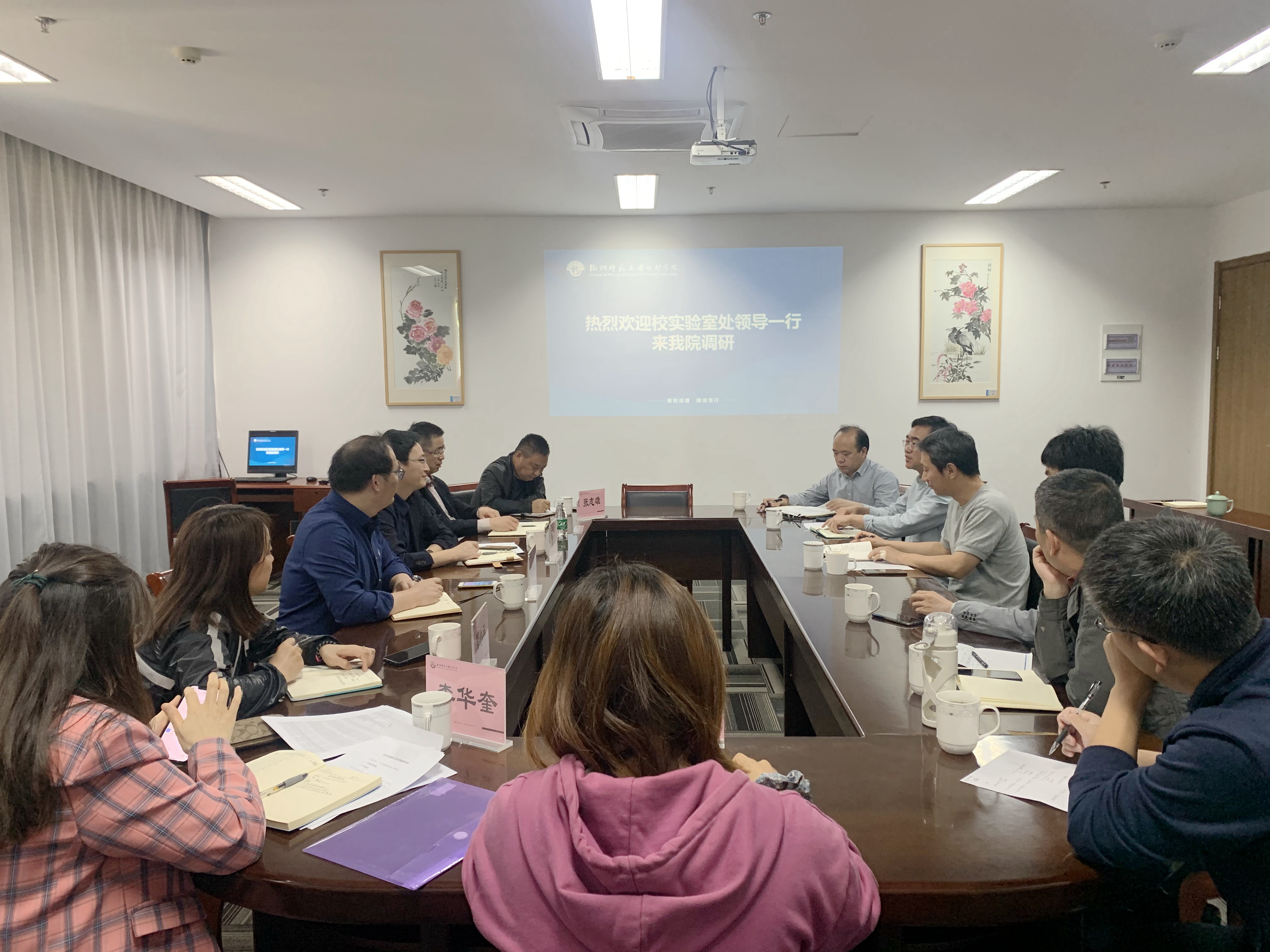 会上,侯红生院长对校实验室处一行人员的调研表示了热烈欢迎,对长期以来对学院工作的支持表示感谢,希望能够通过此次调研,能够加快推动学院实验室建设,帮助学院解决面临的问题,助力学院事业发展;副院长孙哲介绍了学院实验室建设的相关工作。