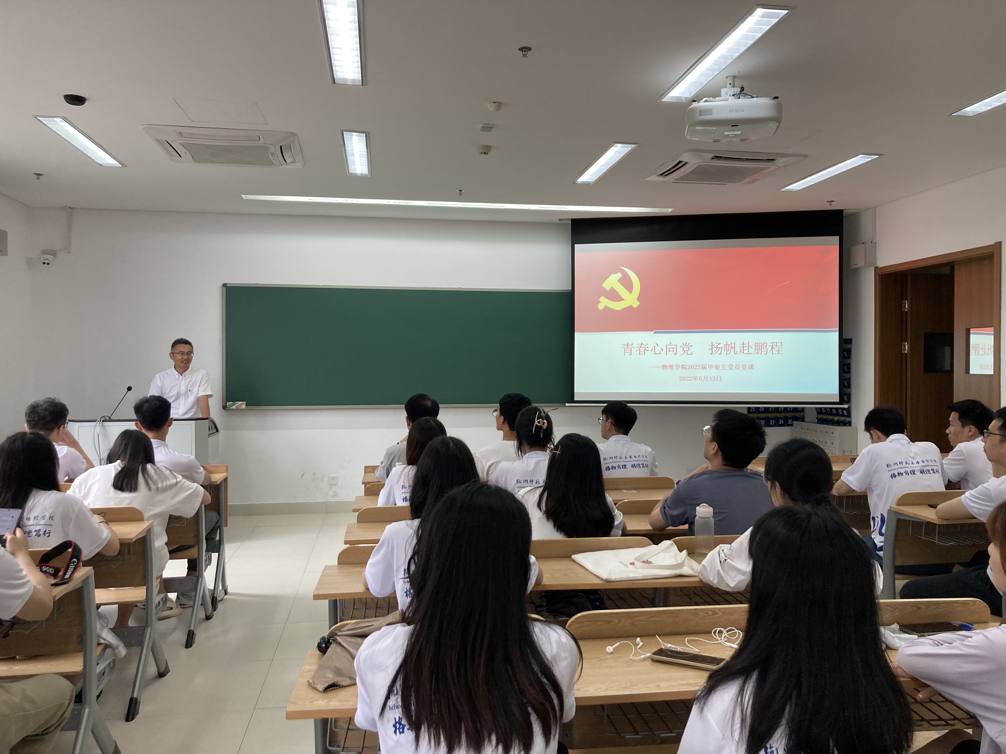 值此毕业季,为切实加强毕业生党员教育,强化毕业生党员理想信念,激发毕业生党员做新时代奋斗者的行动自觉,6月13日下午,学院党委组织开展以“青春心向党,扬帆赴鹏程”为主题的“最后一节”党课活动。学院党委副书记苏晓松为毕业生党员讲党课,组织员龙芳老师、全体毕业生党员参加活动。