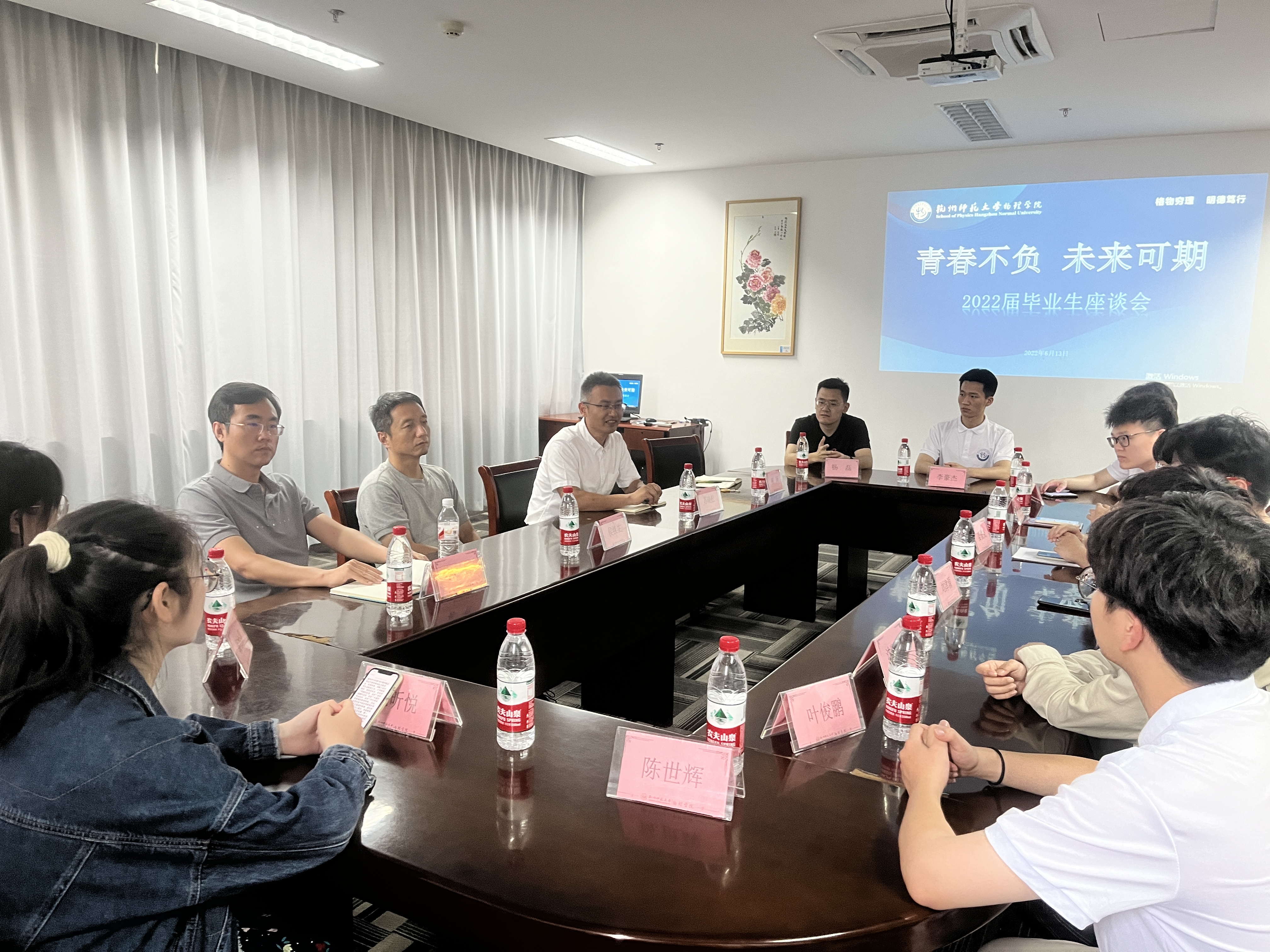 6月13日下午,果冻传媒 举行“青春不负 未来可期”2022届毕业生座谈会。副院长(主持工作)侯红生、副院长孙哲、院党委副书记苏晓松、毕业班辅导员柯珂和11名毕业生代表座谈交流。