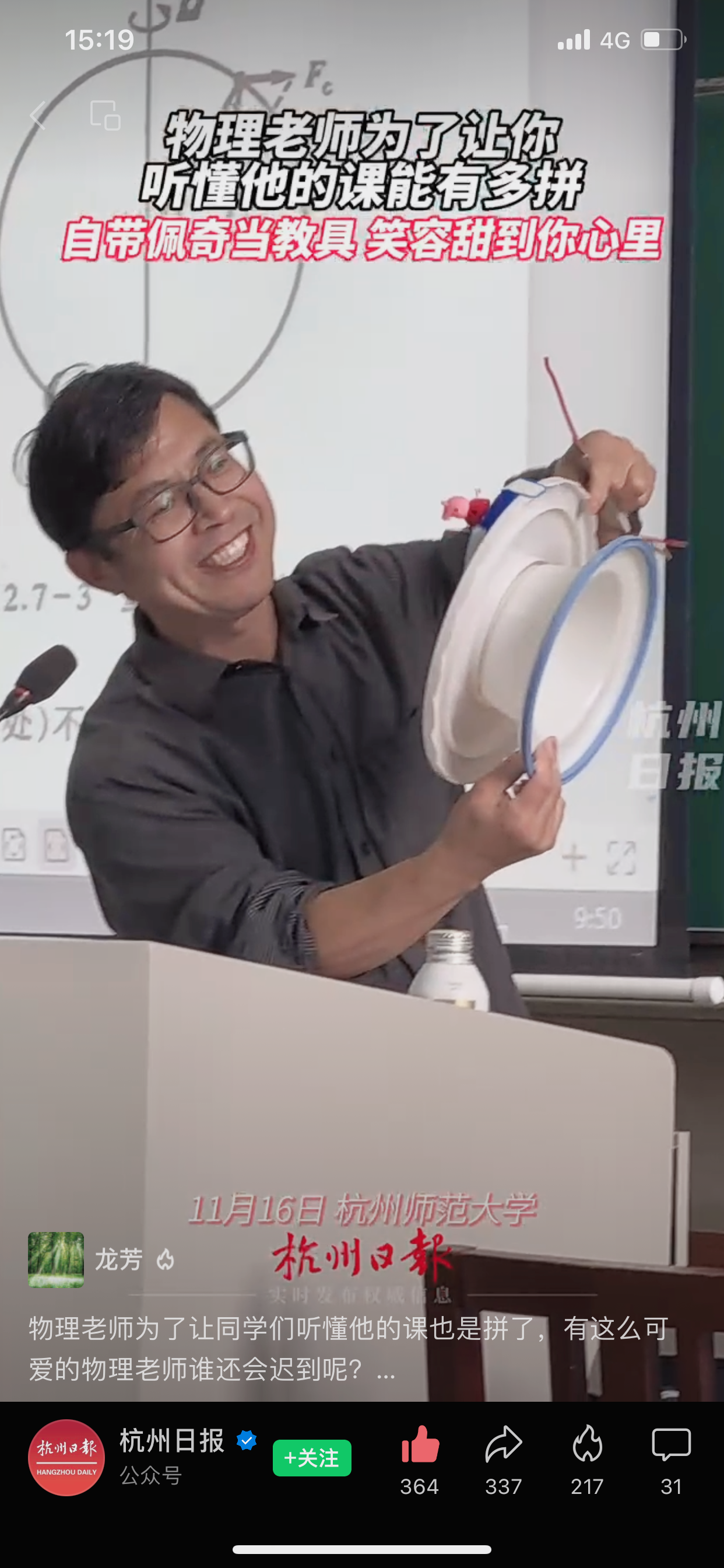 朱吾明老师视频链接:9.76 ytR:/ 复制打开抖音,看看【杭州师范大学的作品】你的物理老师也有小猪佩奇吗# 记录校园生活 # 课... //v.douyin.com/rDGR6e3/