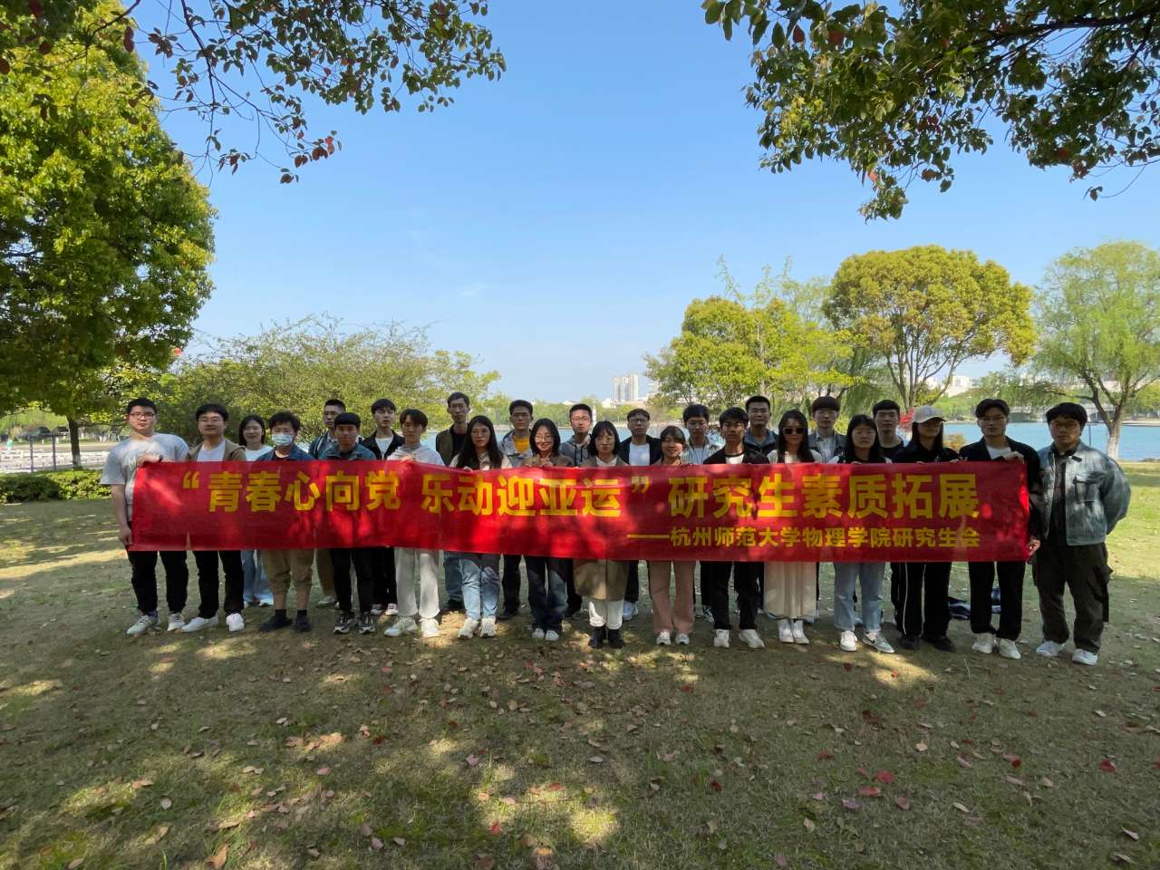 4月9日,春光明媚,由果冻传媒 研究生会主办的“青春心向党,乐动迎亚运”研究生素质拓展活动在嘉兴南湖顺利进行,三十余位研究生参加了此次活动。