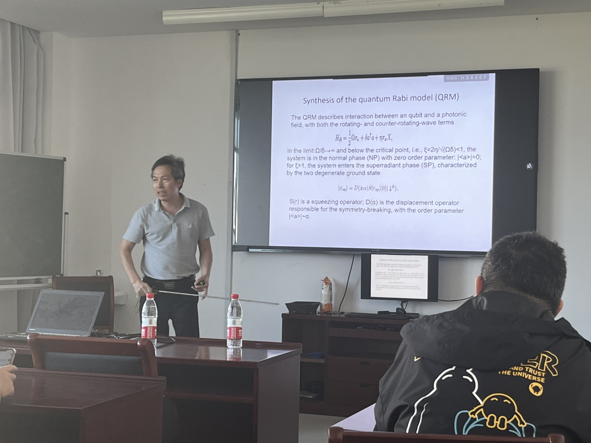 郑仕标教授本次报告的主要内容围绕在电路QED系统中进行的一些量子相变实验和模拟。首先介绍量子拉比模型(QRM),该模型由超导量子比特和微波谐振器合成。随后,郑老师展示用该QRM实现的一阶超辐射相变,其特征是光子超级猫态的出现,由真空态和两个相相反的相干态组成。接下来,郑老师详细介绍了用拉比模型对狄拉克粒子的量子模拟和非厄米哈密顿的研究。最后,郑老师在电路QED架构中展示了一种特殊纠缠现象的实验演示。报告会上,大家积极踊跃与郑老师交流,郑教授也对果冻传媒 师生给予高度的评价和认可。本次学术交流更加激励了广大师生的科研兴趣和动力,活跃了学术气氛,对果冻传媒 师生的学习和工作具有很大的帮助。