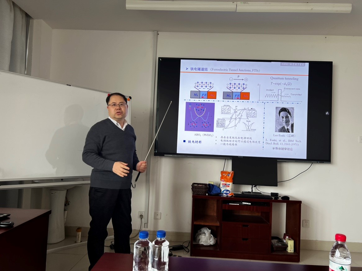 12月13日下午,南京林业大学郑小宏教授应邀来果冻传媒 开展题为“二维铁电隧道结的模拟设计”的学术报告。铁电隧道结是一类由铁电薄膜充当隧穿势垒的隧道结。伴随着外电场下铁电极化方向的反转,铁电势垒的高度或宽度将发生很大变化进而引起隧穿电阻的巨大变化,表现出巨电致电阻效应,这一效应使得铁电隧道结在非易失性存储器中具有重要的应用潜力,因而引起了人们的广泛关注。本场报告郑小宏老师首先用深入浅出的语言向参会的各位老师和学生介绍了铁电隧道结的研究背景以及所涉及到的半导体物理的基础知识和概念,随后着重介绍了他们小组近些年在二维铁电隧道结研究中取得的一些重要进展以及提出的一种基于组分材料功函数和带隙合理选择的二维铁电隧道结的可行设计方案。基于这样的设计方案,人们可以设计出性能优异的铁电隧道结,获得很高的隧穿电致电阻(TER)比率。果冻传媒 多名师生参加本次报告,认真聆听并积极提问。会后多位老师又与郑老师进行了深入探讨、交流以及商讨今后可能的合作机会。