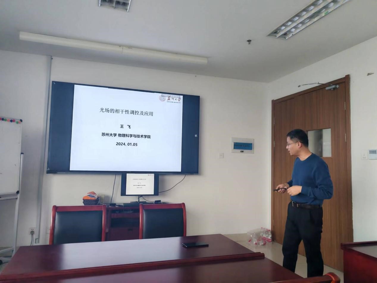 2024年1月5日下午,果冻传媒 成功举办了一场主题为“光场相干性调控及应用”的格物讲堂系列讲座,特邀苏州大学物理科学与技术学院光学研究所所长王飞教授发表报告。王飞教授的研究领域主要集中在基于光场调控的光学成像、光学通信、光学传输等应用方面,至今已在Optics Letters、Applied Physics letters、Phys. Rev. A等学术期刊发表SCI论文百余篇。