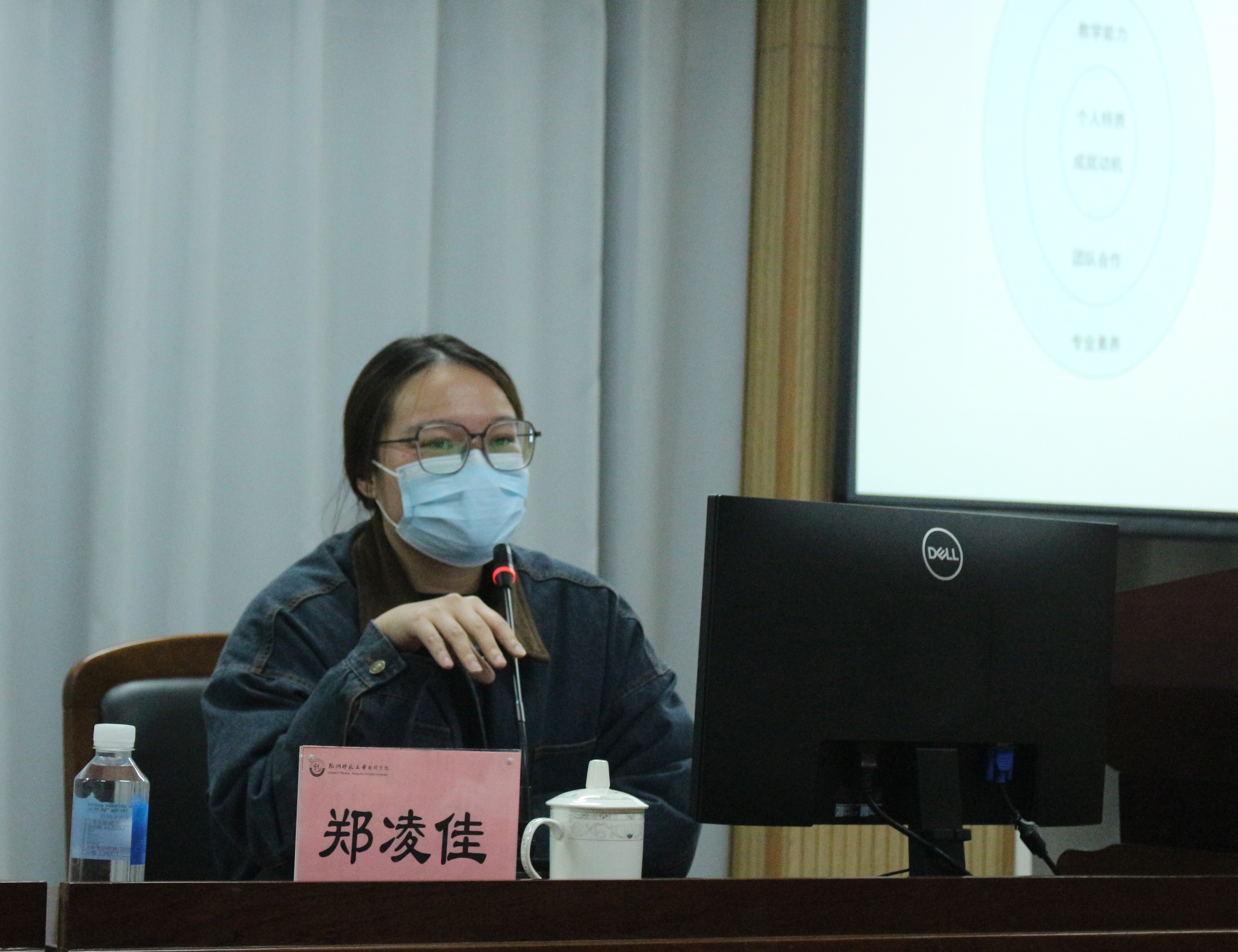 随后,郑老师从师范生毕业生求职面试以及职场初期发展规划等维度,结合近些年的工作和思考,向同学们分享了她对如何提高师范生岗位胜任力的观点。她认为,教师的岗位胜任力是能站稳讲台,既要具备专业授课能力也要有课堂管理能力,给予学生关怀与服务,有人格吸引力。同时,作为传道受业解惑者还需兼具终身学习的意识,这是教师专业发展的不竭动力。