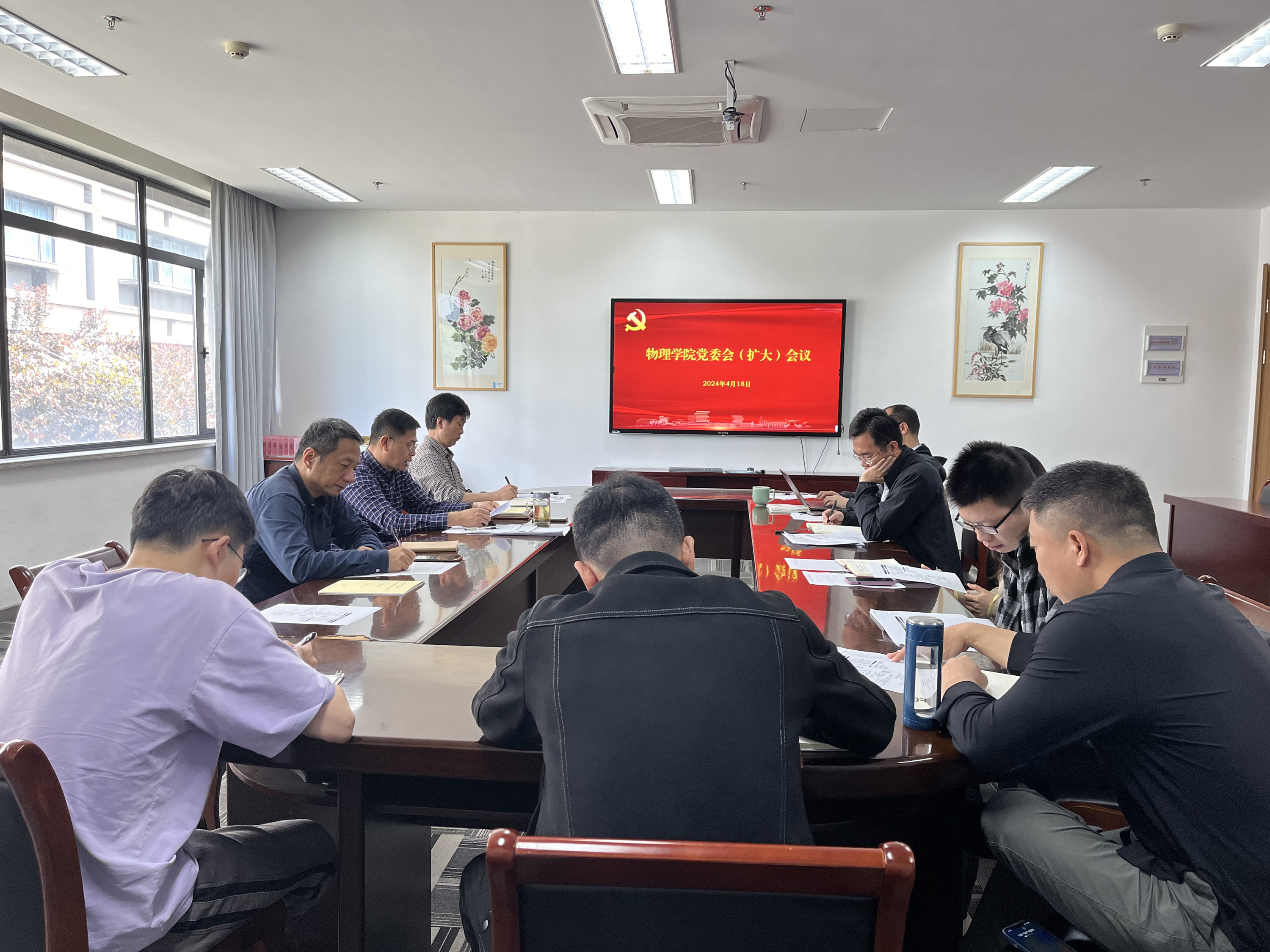 4月18日上午,果冻传媒 在党员之家召开党委会(扩大)会议,传达学习党中央和省市委关于党纪学习教育工作部署要求,根据学校《关于开展党纪学习教育的实施方案》,部署学院党纪学习教育工作安排。党委书记何军主持会议并作动员讲话,院党政班子成员和各党支部书记参加会议。