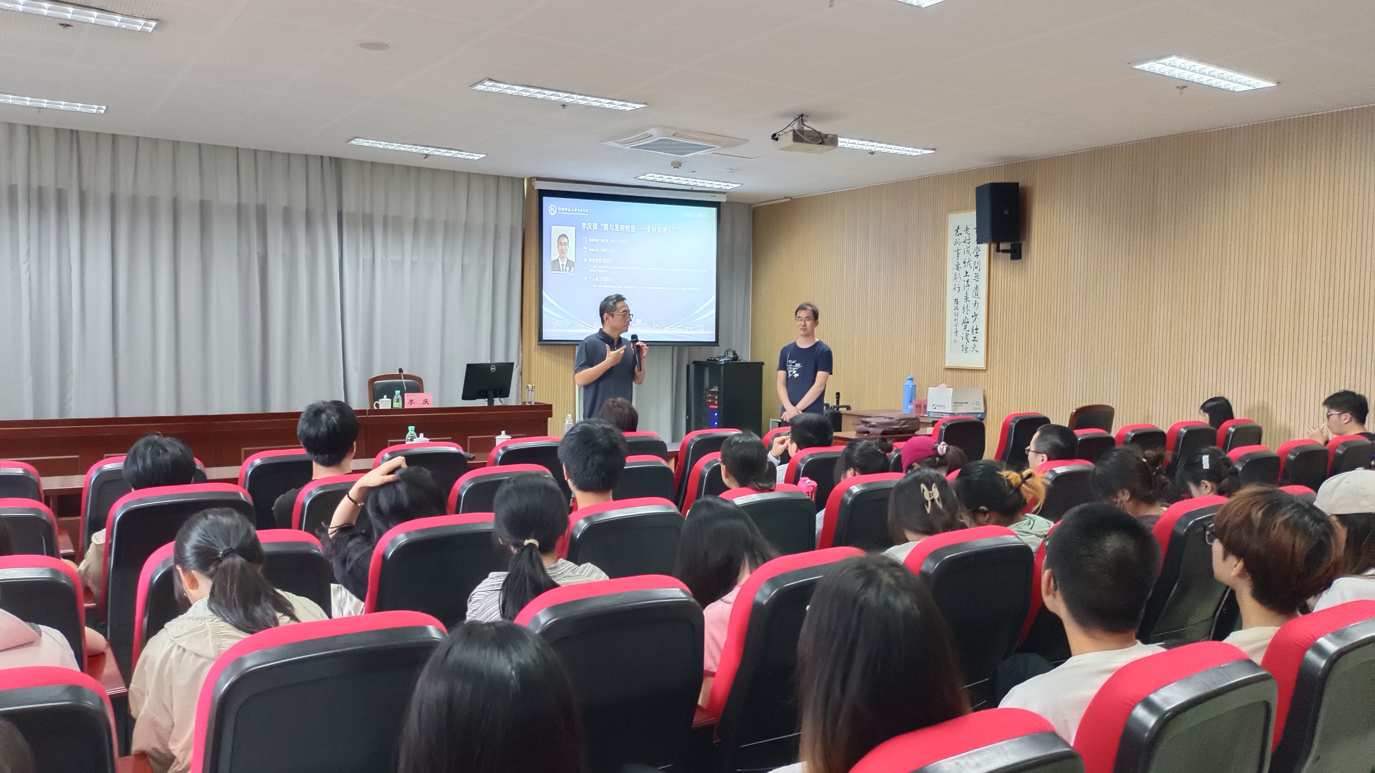 6月7日下午,果冻传媒 2016届物理学校友、中国发明协会会员、安徽信息工程学院教师李庆返校作题为“我与发明创造——专利申请二三事”讲座。学院院长侯红生教授、校友导师徐庆君老师出席讲座。