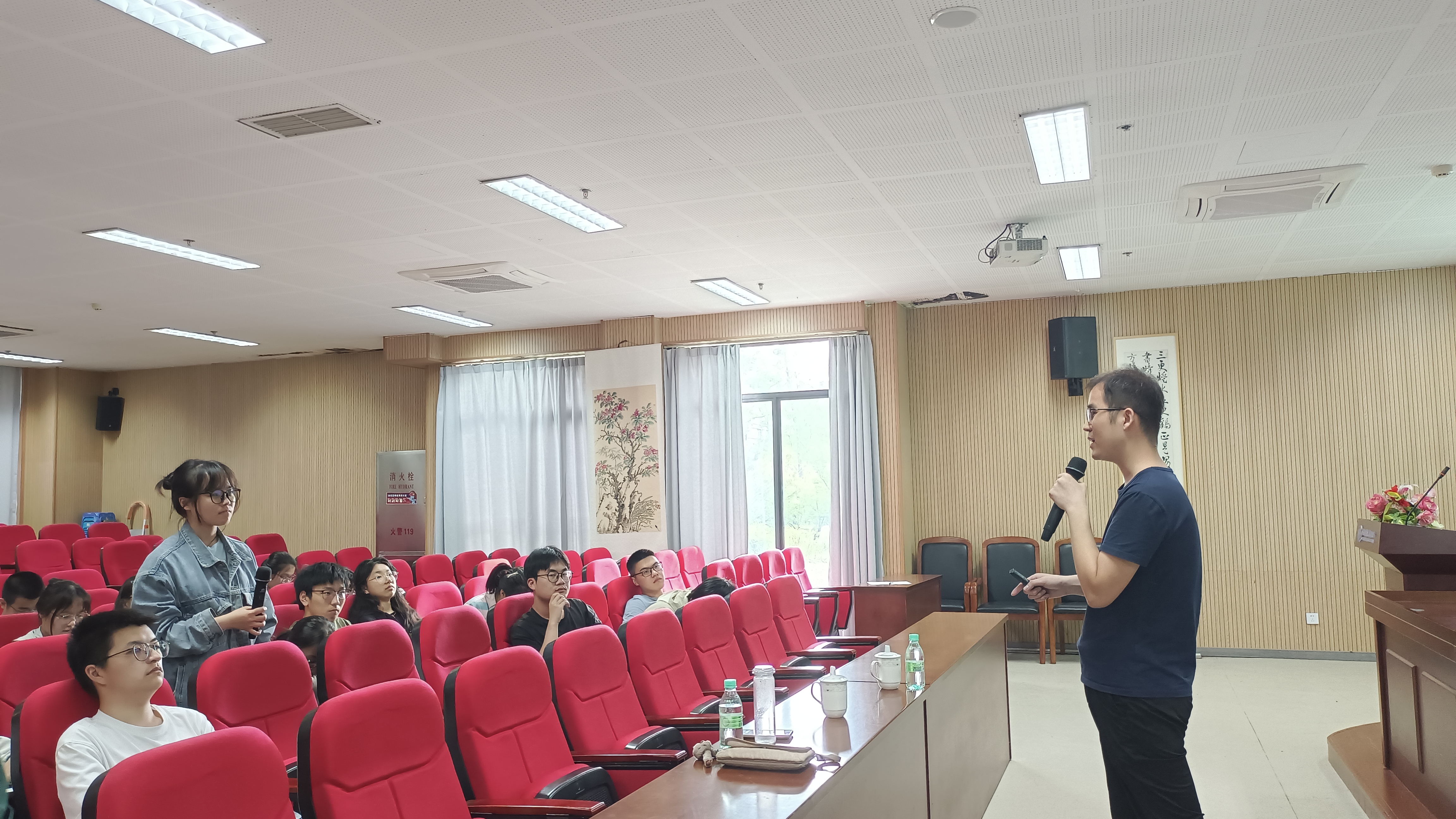 李老师的讲座内容丰富、深入浅出,受到在场师生的一致好评。讲座互动环节,物理212崔文敏同学结合讲座内容与李老师提问互动,李老师也结合个人实践经验进行了耐心详细的解答。