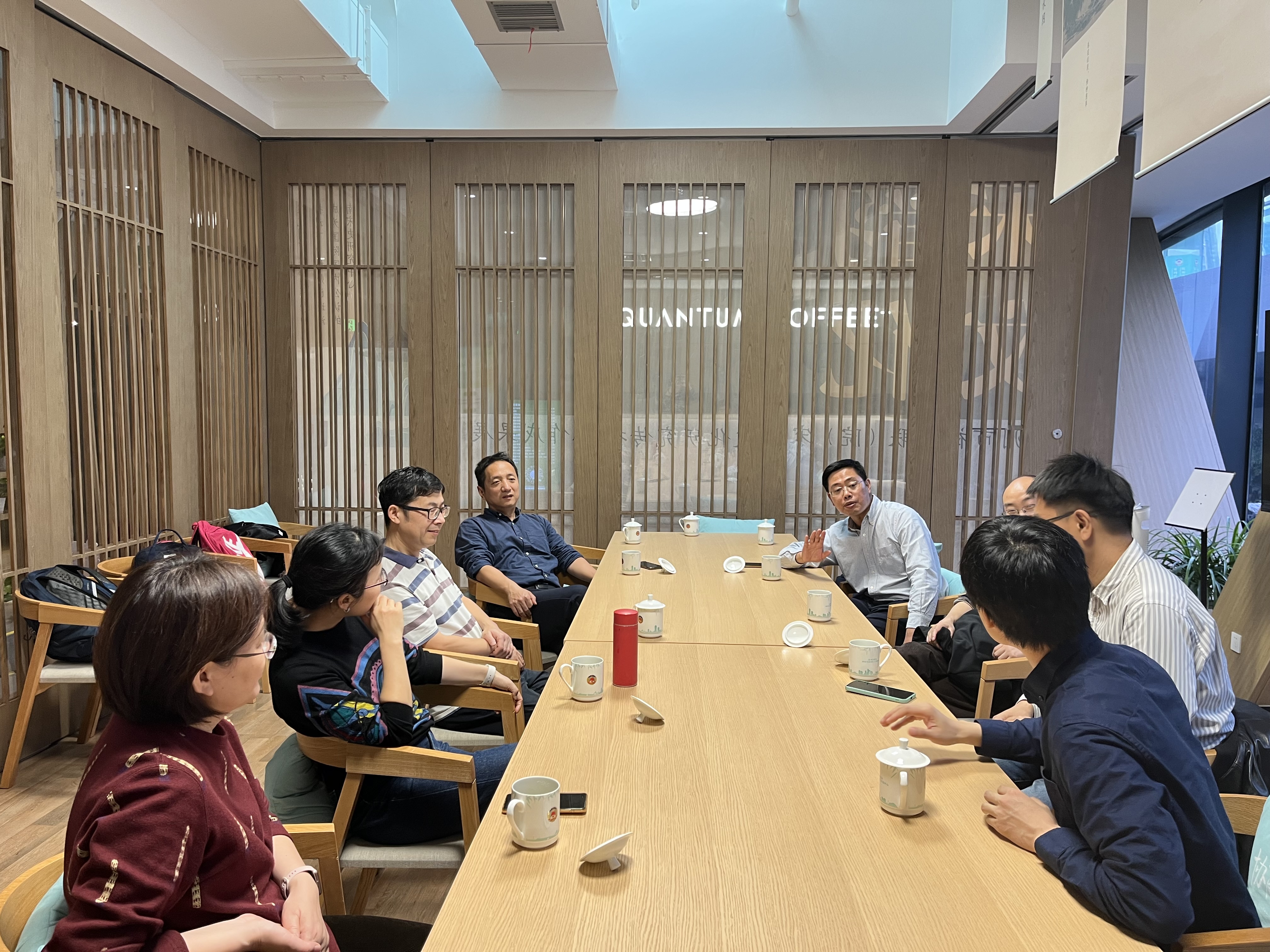 老师们首先参观了杭州市政协新时代协商民主实践中心。中心位于杭州市城市阳台地面一层,有陈列展示、协商议政、学习交流、互动体验四个区域,是全面了解社会主义协商民主制度及杭州政协协商实践的重要平台。通过参观学习,大家了不仅深刻领悟了协商民主的历史背景与时代价值,还更加深入地了解了杭州政协在推动协商民主进程中的积极行动与显著成效。参观结束后,在协商驿站开展了讨论交流,大家围绕学校和学院发展、教学科研水平提升、学生培养体系优化等方面展开了讨论,在轻松而开放的氛围中,各位老师各抒己见,提出了诸多富有建设性和创新性的建议。