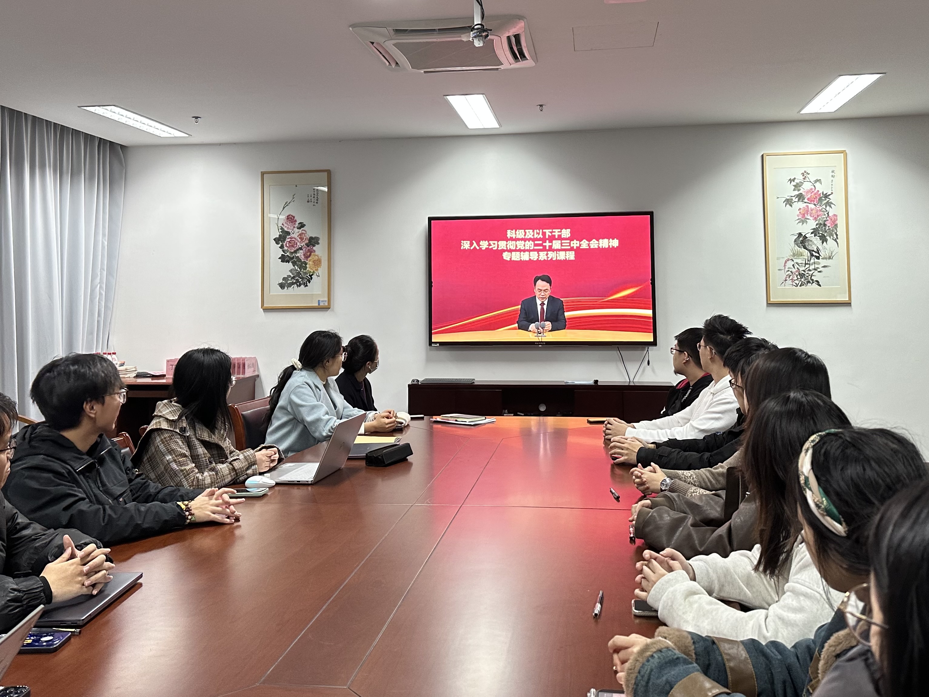 2024年11月26日19:00,果冻传媒 研究生第二党支部在勤园19号楼党员之家举行了十一月党日活动。本次活动的主题是“学习贯彻党的二十届三中全会精神”培训,在观看了相关学习视频后,由颜佳月、夏之铉和胡杉彤三位党员分享学习心得体会。
