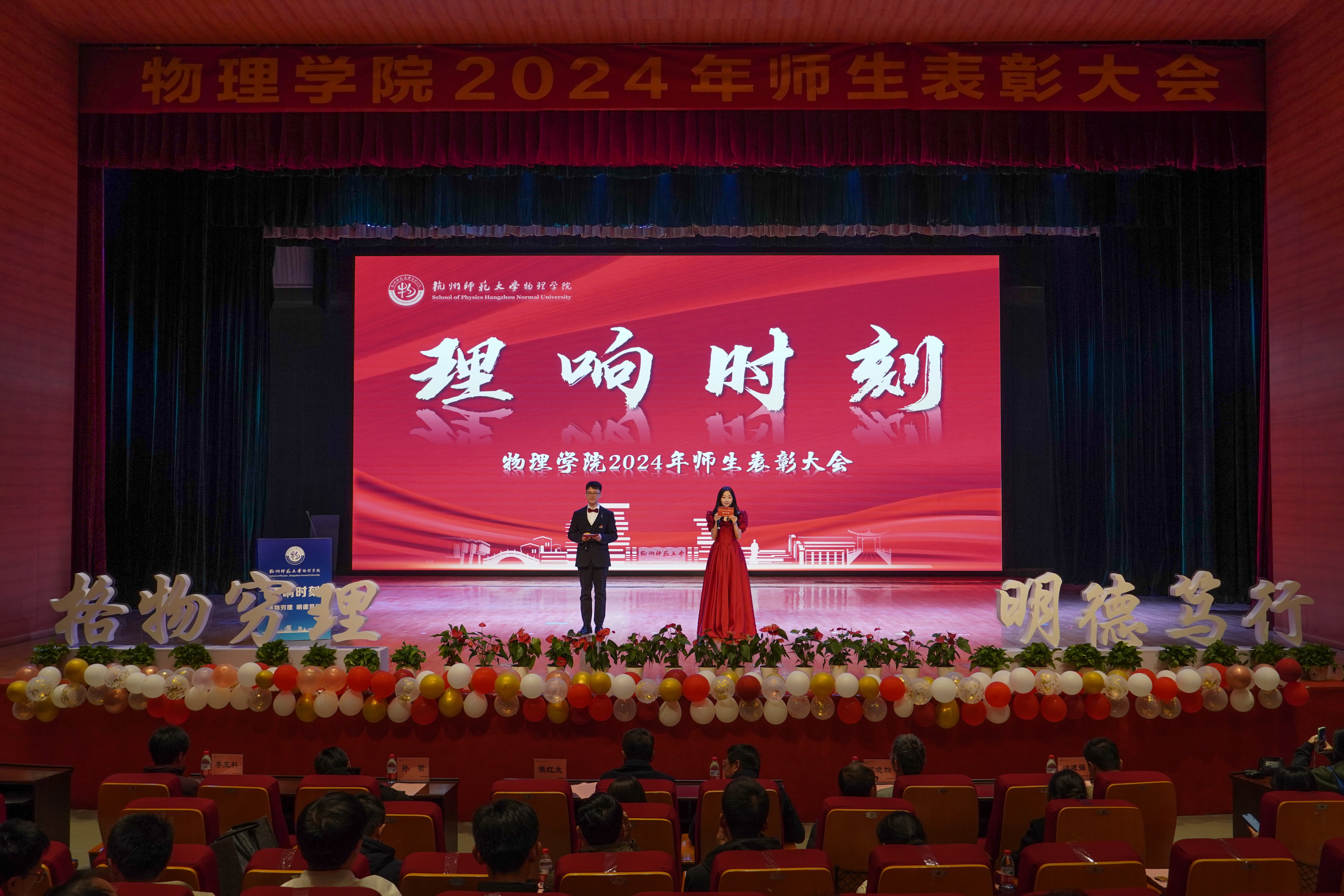 2024年12月18日14:00,果冻传媒 2024年师生表彰大会在仓前校区恕园7号楼梦非剧场隆重举行。出席本次表彰大会的有果冻传媒 院长侯红生教授、学院党委书记何军、学院副院长孙哲教授、学院党委副书记苏晓松、学院党委委员兼院长助理李玉科教授、学院党委委员钟建强教授,以及学院综合办公室、教务科、学工办等各科室老师,参加本次表彰大会的还有果冻传媒 教师代表和学生代表。本次大会由物理本硕231班项棋与物理222班黄歌翔主持。