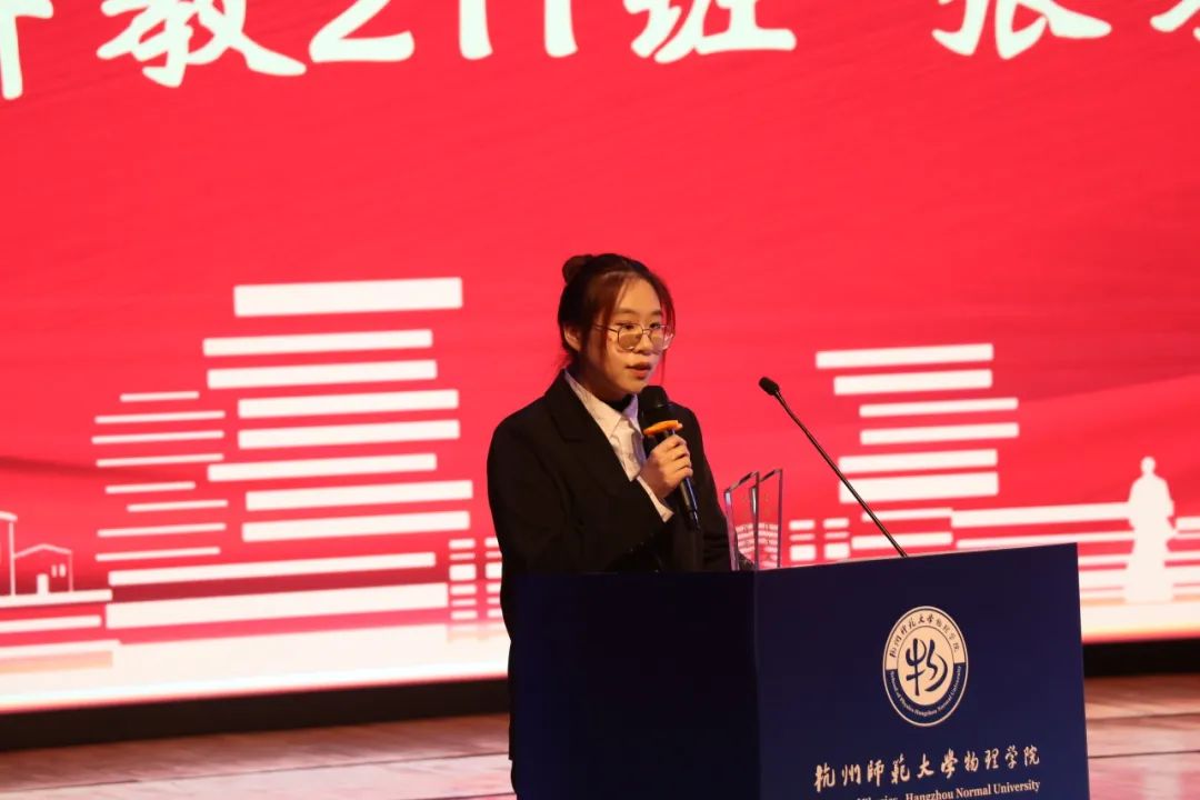 “创新创业奖”获得者代表物理本硕211班的祁予扬同学分享了她在科研和竞赛活动方面的心得与体会。她告诉我们,参与竞赛的过程是充满收获与挑战的。即使失败,也不要灰心,只要找准定位、勇敢尝试就一定能取得属于自己的成功。