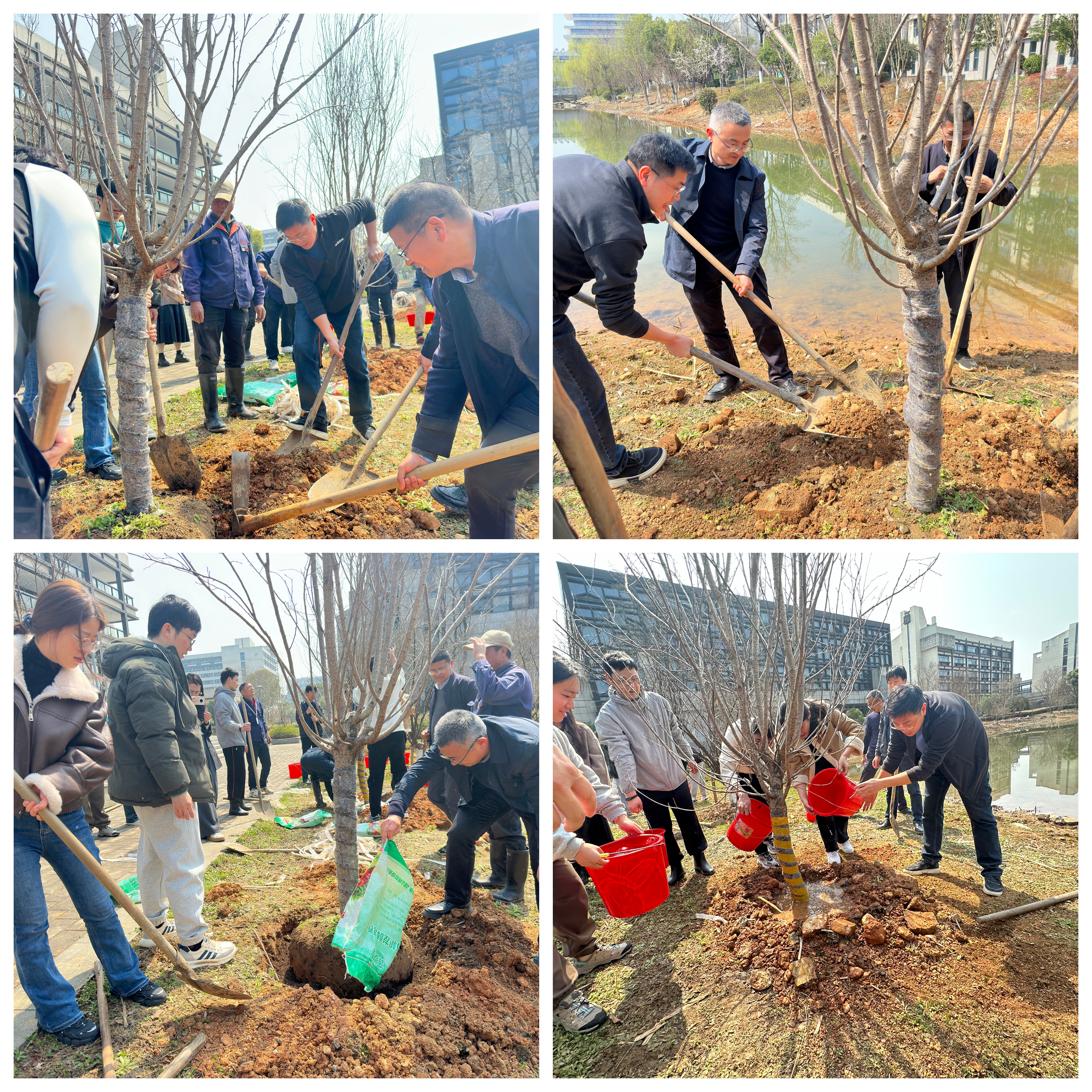 在喜迎第47个植树节之际,学院积极响应国家关于加强劳动教育的号召,于3月11日与学校后勤园林部门联合开展了“劳动育人·绿色同行”主题植树活动。学院党委书记何军、副书记苏晓松和青年教师代表、学生代表共同参加。此次活动通过劳动实践体验,引导师生在劳动中受教育、长才干、作贡献,不仅加深了师生之间的情感联系,也将为校园增添了一抹生机勃勃的绿色。