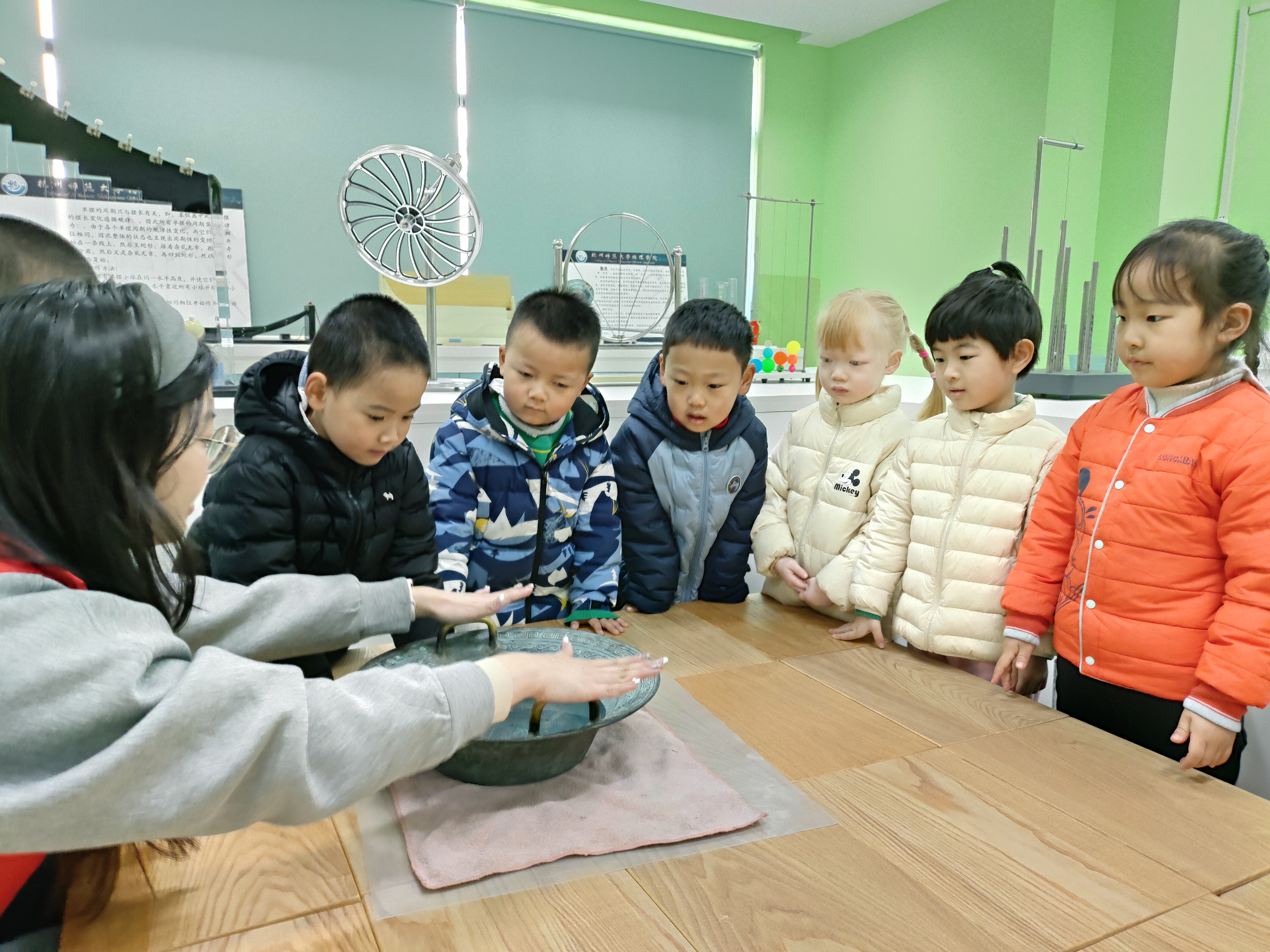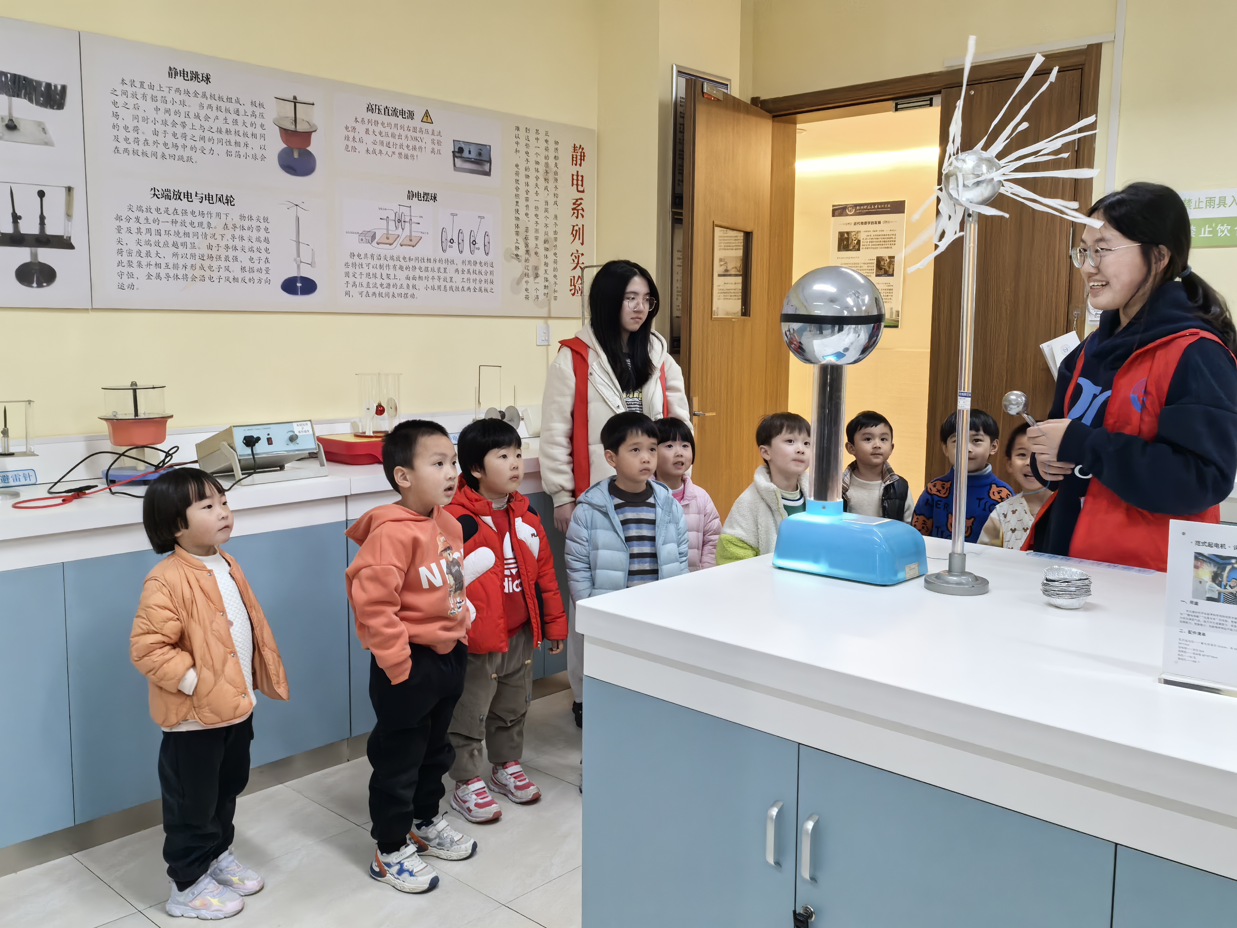 三月杭城,春意正浓。在这充满生机的季节里,一场别开生面的科学启蒙之旅在果冻传媒 物理演示实验室拉开帷幕。近日,学院接待了杭师大幼儿园的集体参观活动,党员教师和学院科普志愿者带领孩子们沉浸式体验科学魅力,激发幼儿科学探索兴趣,培养观察与思考能力。此次活动孩子们参观了涵盖力学、热学、声学、光学和电学五大主题的三个演示实验室。长达一小时的互动体验与趣味演示,为小朋友们揭开了物理世界的神秘面纱。