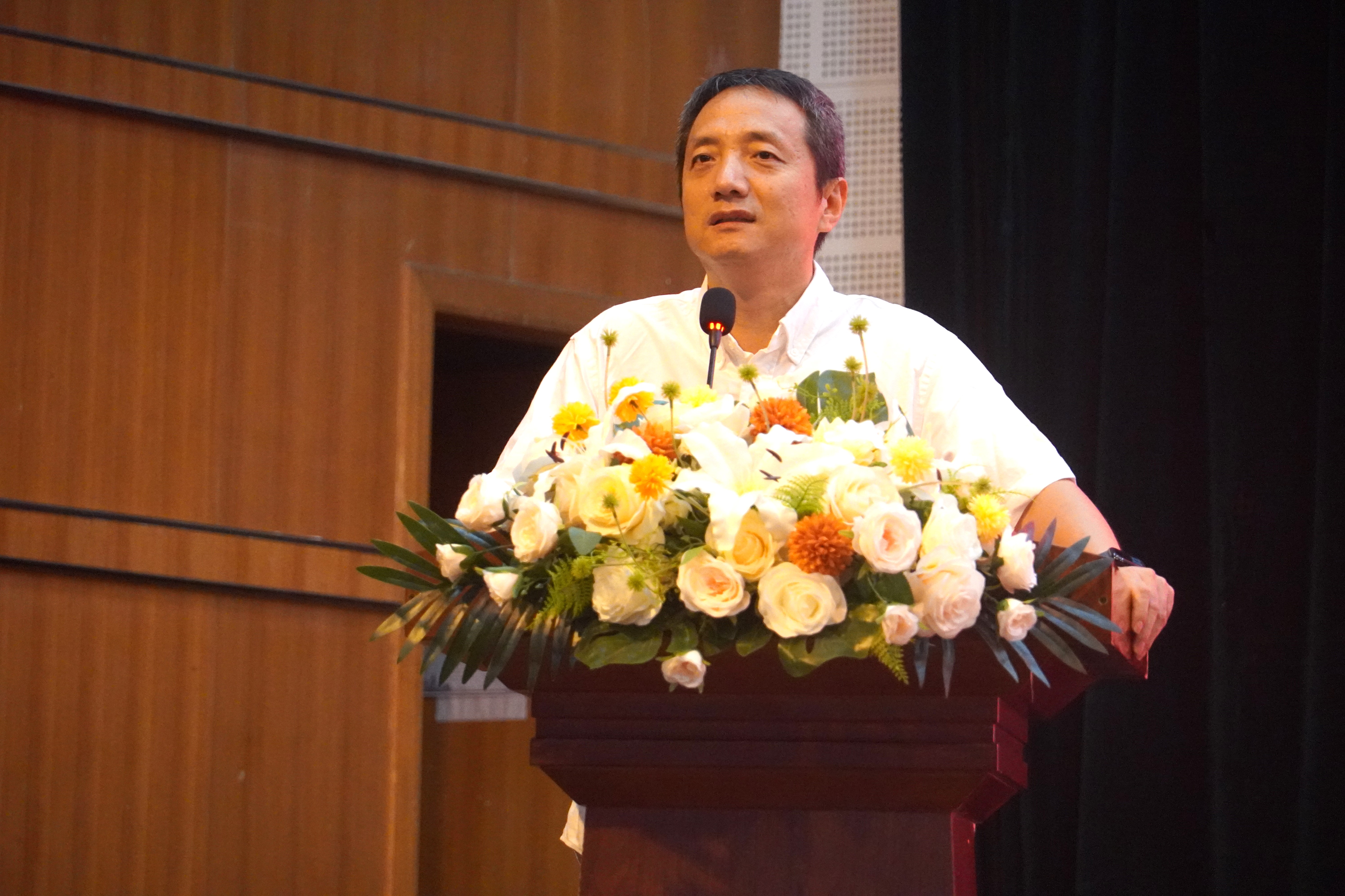 欢迎会在雄壮的国歌声中拉开帷幕。院长侯红生教授致辞,代表全院师生向257名2025级本科新生的到来表示热烈欢迎。他结合国家发展大势、学科建设历程与学院办学成果,向新生提出三点殷切期望:以科学家精神为“指南针”,涵养家国情怀,勇攀创新高峰;以教育家精神为“铺路石”,夯实专业基础,提升育人素养;以学院为“温暖港湾”,在探索与尝试中不断成长、锻炼自我。
