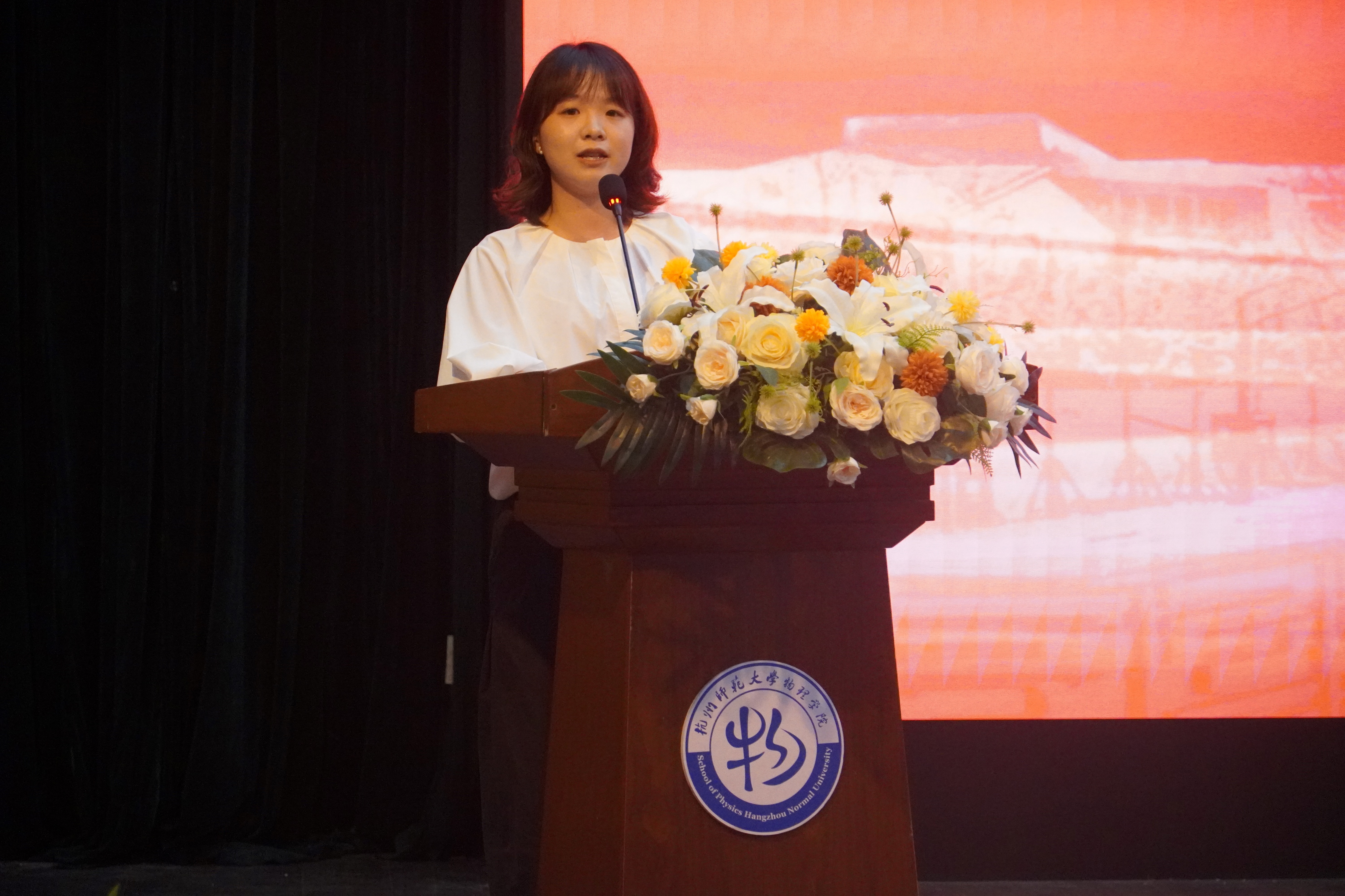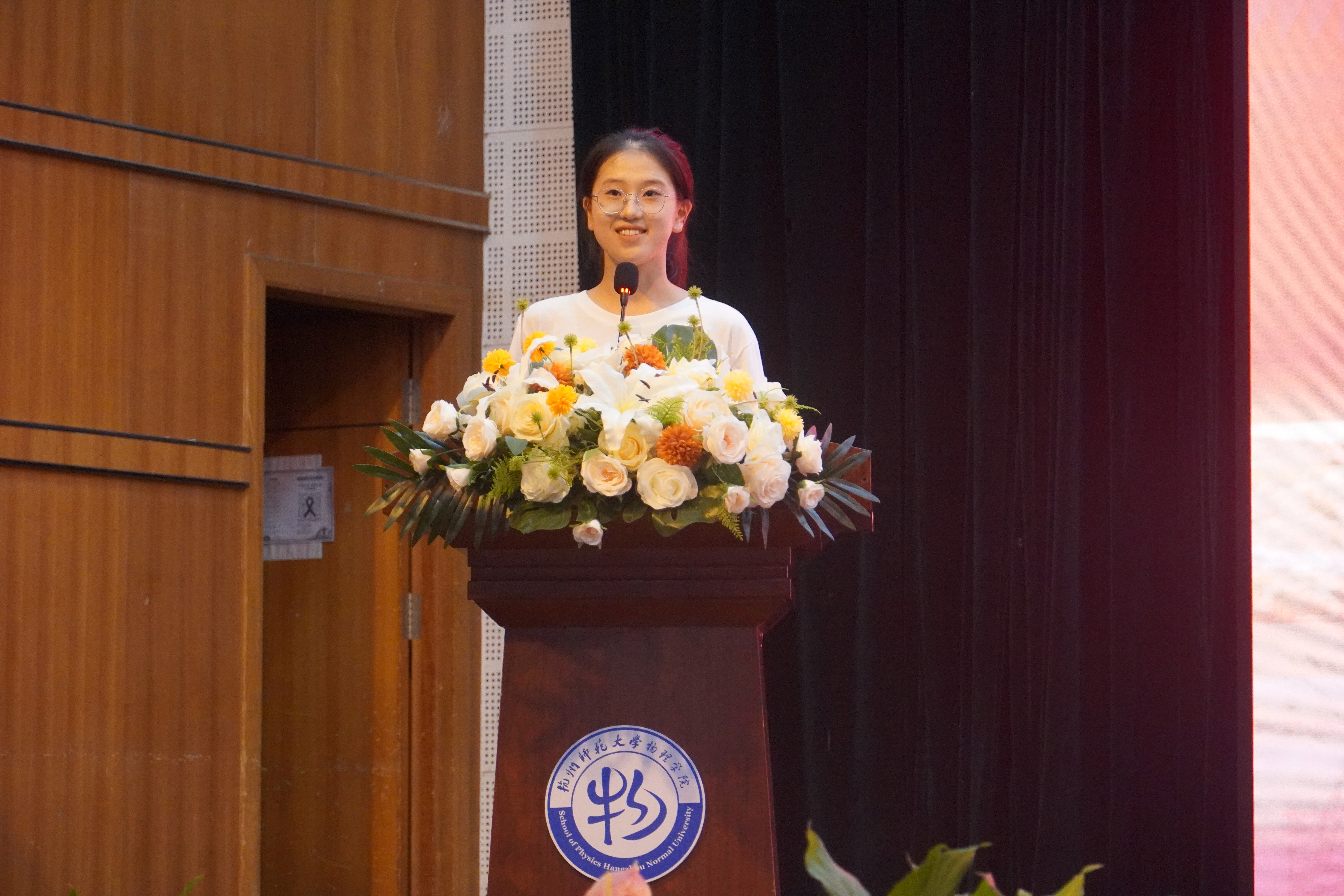 校十佳班主任陈斌老师作为教师代表发言。他从扎实学问、涵养师德、胸怀家国三个维度勉励新生,期望大家努力成长为科技前沿的贡献者和教育事业的筑梦人。物理复合222班梁烁屹同学结合自身学习实践经历,为新生展现了大学生活的多元可能与发展路径。物理本硕251班祝赫同学代表全体新生郑重承诺,将秉承“格物穷理、明德笃行”的院训精神,珍惜宝贵的大学时光,奋发有为,砥砺前行。