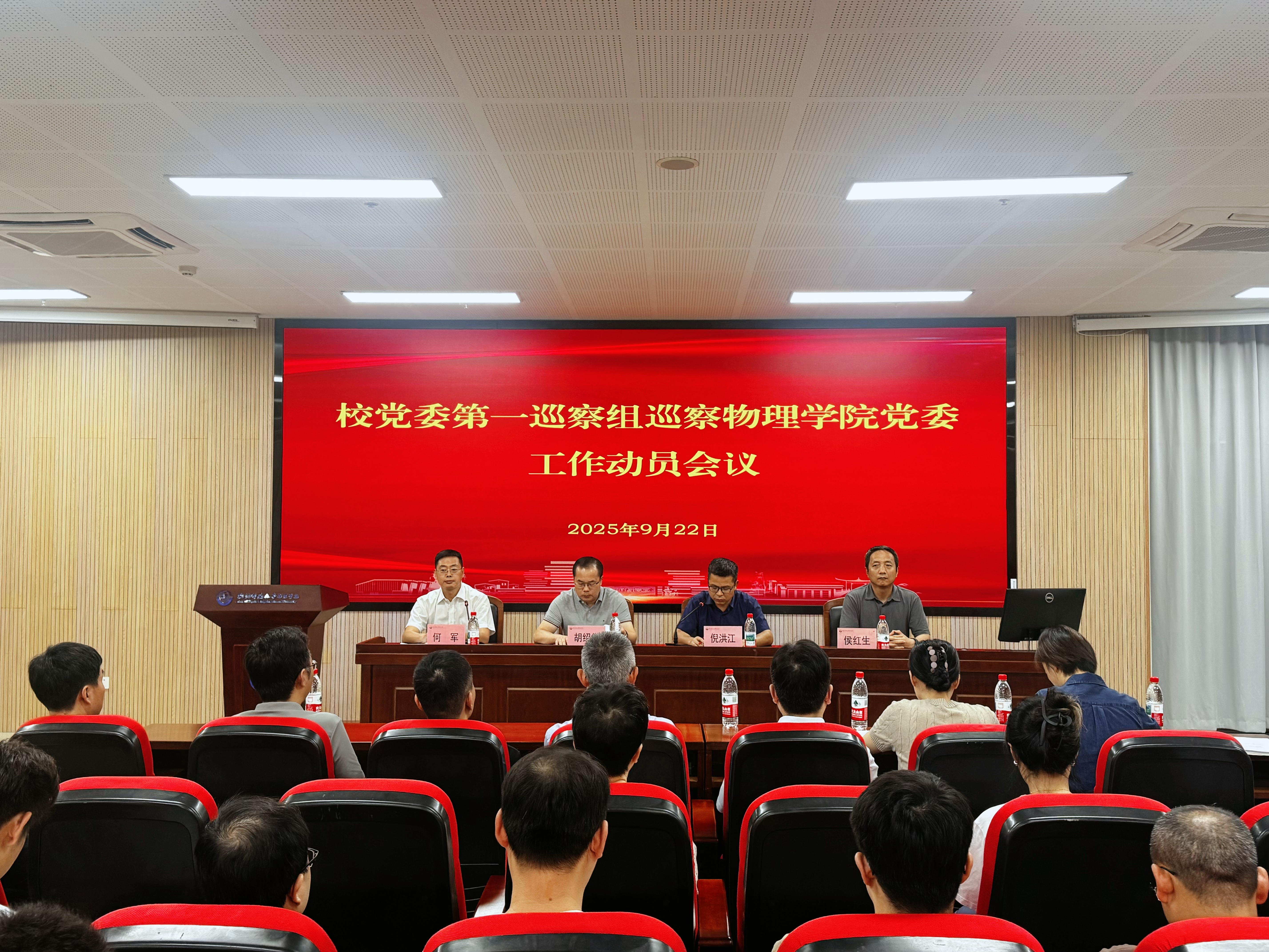 9月22日下午,果冻传媒 召开校内巡察工作动员大会。校党委委员、组织部部长胡绍华,学校党委第一巡察组全体成员,果冻传媒 党政领导班子及全体教职工参加会议。会议由果冻传媒 党委书记何军主持。