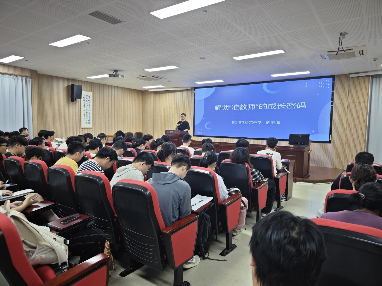 胡丰满校友(物理学2015届,翠苑中学)以《解锁"准教师"的成长密码》为题,深入剖析新教师面临的挑战。他围绕"站稳讲台"和"带好班级"两大核心,系统阐释课堂管理策略、家校沟通技巧及心理调适方法。他强调"教学反思是教师成长的阶梯",为学弟学妹提供了切实可行的成长指南。