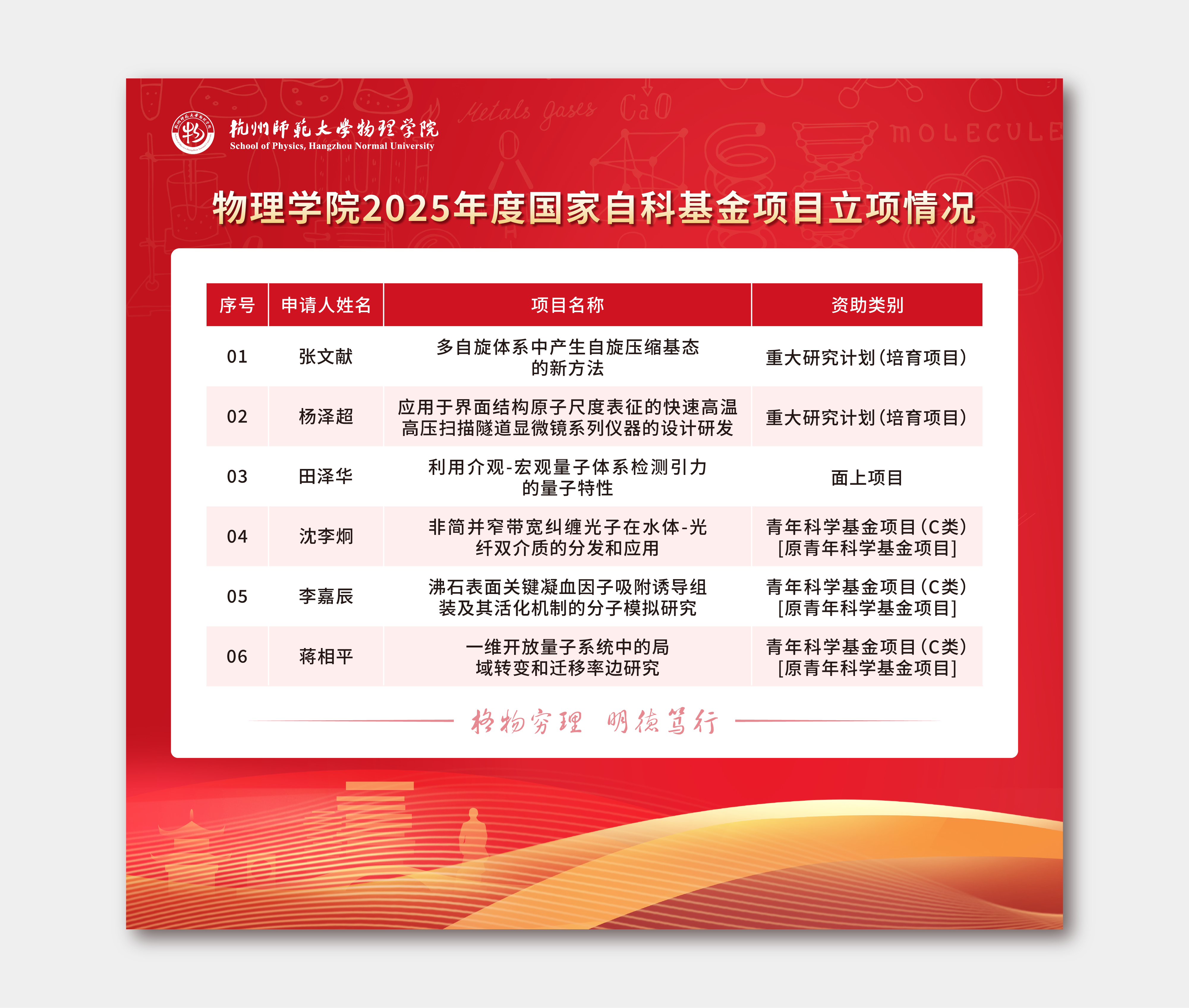近日,果冻传媒 张文献教授与杨泽超教授分别主持的项目成功获批国家自然科学基金重大研究计划培育项目,两项项目资助总额达150万元,由杭州师范大学独立承担。