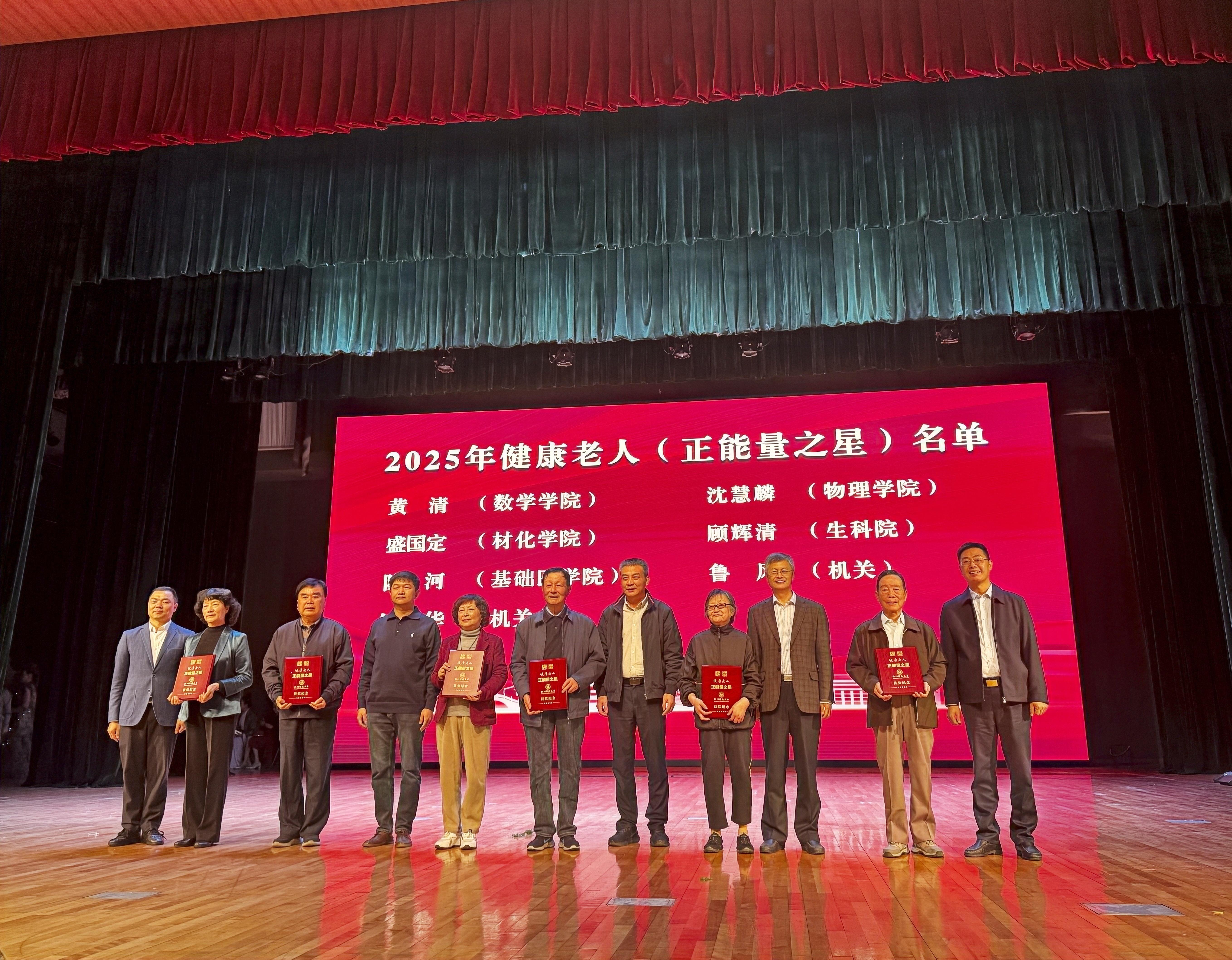 在10月28日上午学校举行的重阳节艺术展演活动暨健康老人(正能量之星)表彰会上,果冻传媒 退休教师沈慧麟以其感人事迹和积极向上的生活态度,光荣当选校"健康老人(正能量之星)"。