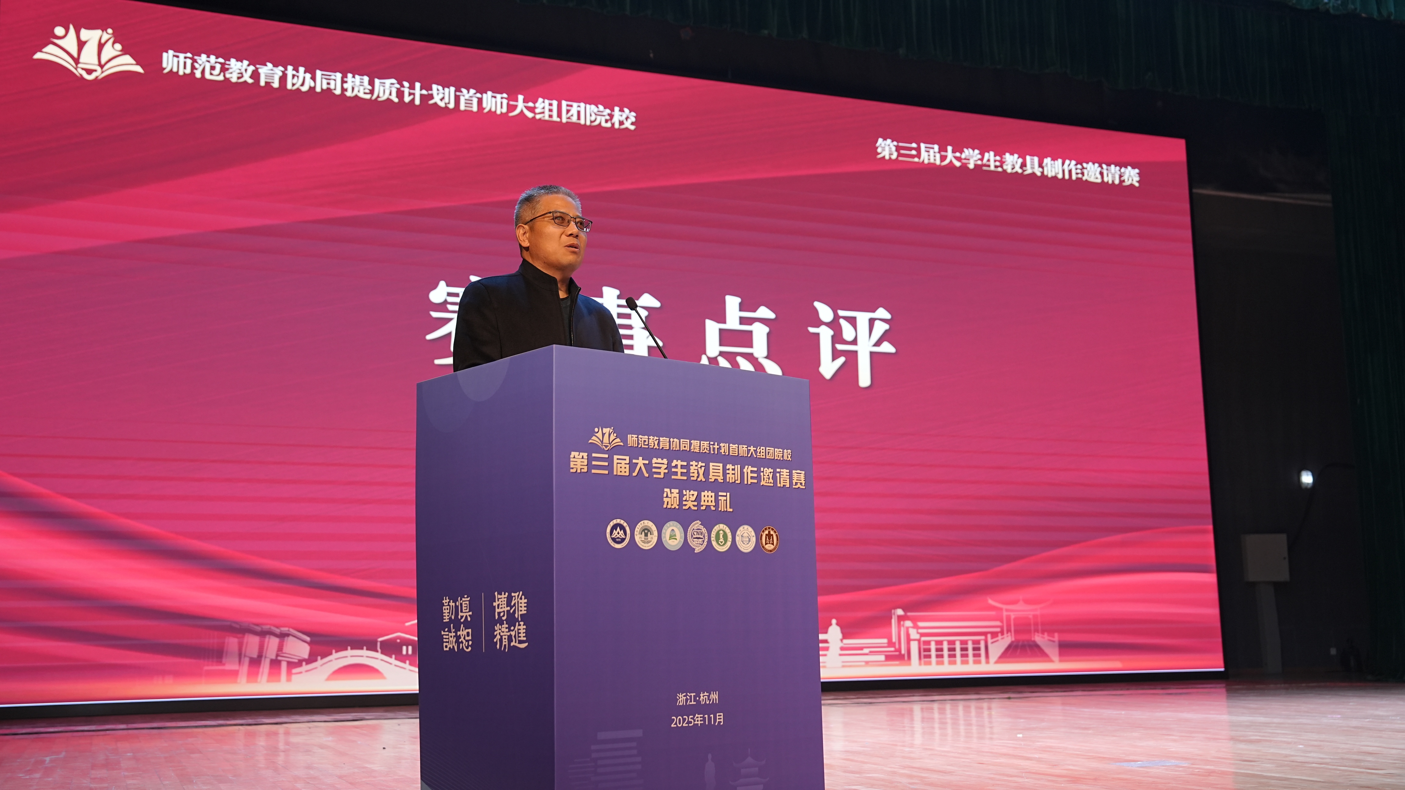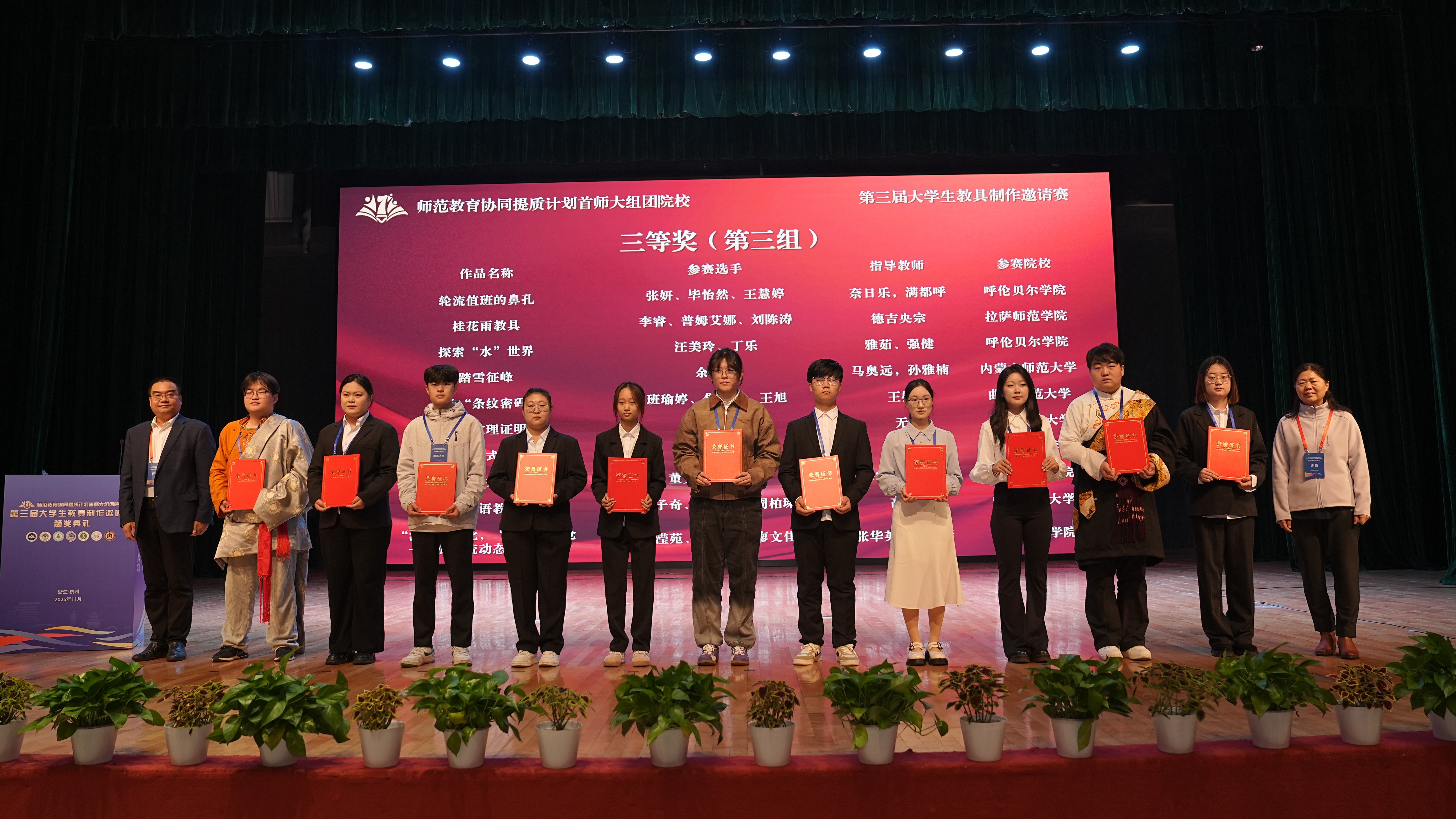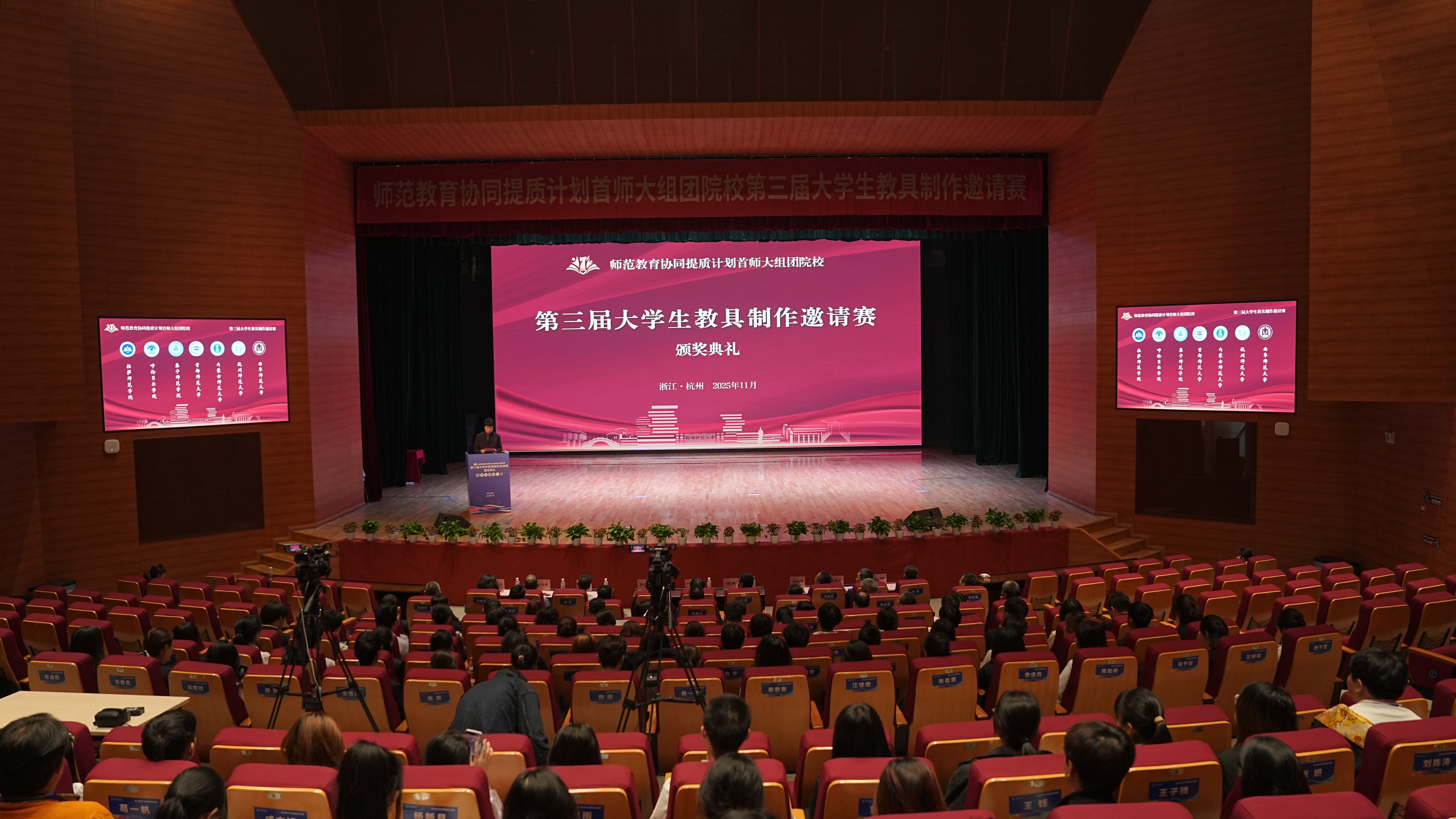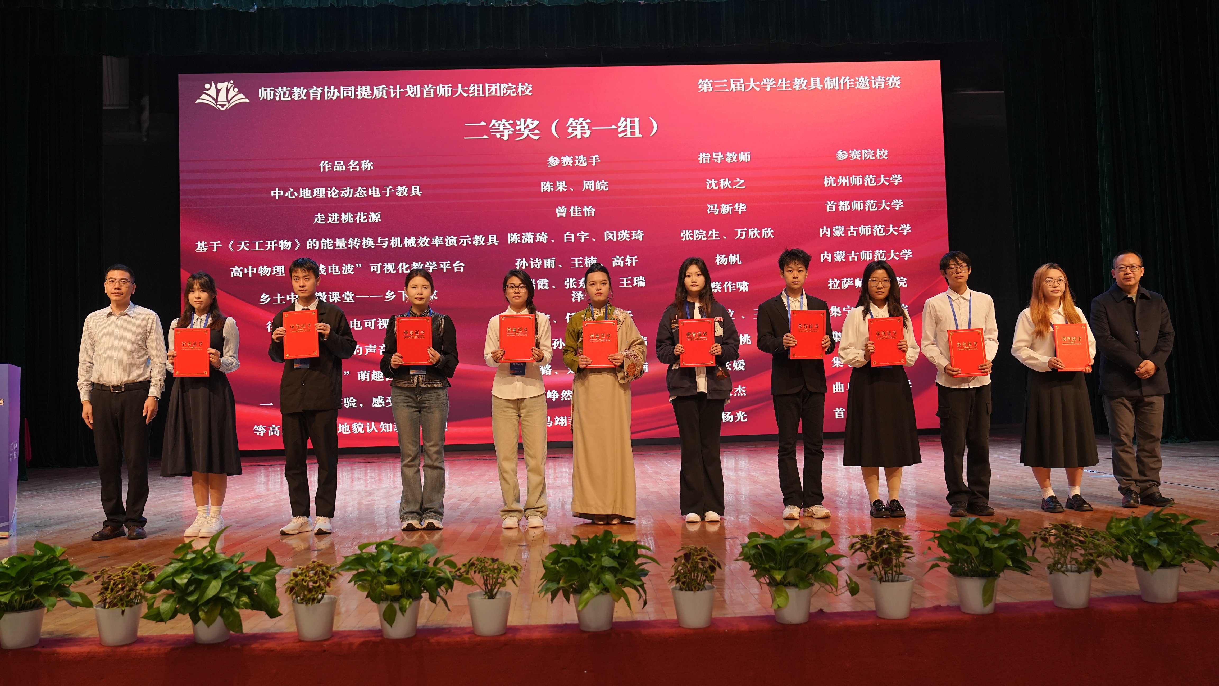 11月2日,由杭州师范大学主办,首都师范大学牵头、指导和支持,内蒙古师范大学、曲阜师范大学、呼伦贝尔学院、集宁师范学院、拉萨师范学院共同参与的师范教育协同提质计划首师大组团院校第三届大学生教具制作邀请赛圆满落幕,并举行了颁奖典礼。果冻传媒 党委委员、副校长戴丽敏、教务处处长孙德芳、果冻传媒 党委书记何军出席颁奖典礼。来自7所院校的评委、指导教师、参赛选手、领队等160余人参加典礼,典礼向组团七所院校师生进行了全程现场直播。