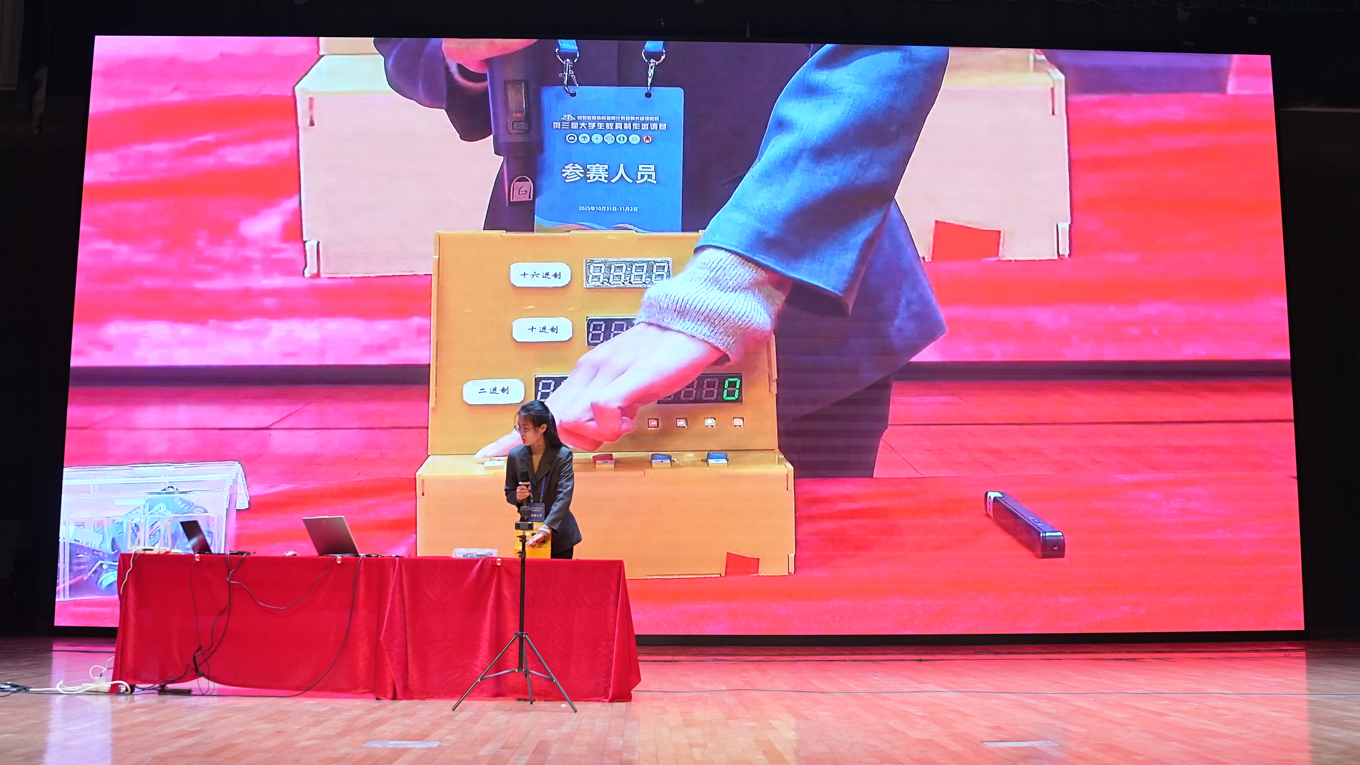 在优秀作品展示环节,特等奖获奖选手不仅分享了作品从“创意萌芽”到“成品落地”的全过程,还现场进行教具实操演示,直观呈现其在课堂教学中的应用效果,为在场师生带来了一场兼具专业性与实践性的学习交流盛宴。