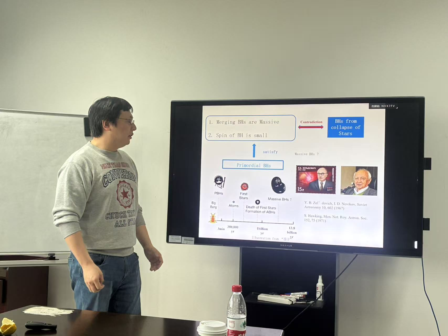 整场报告逻辑严谨、内容前沿,生动展现了理论宇宙学在探索宇宙起源问题上的深度与活力。在随后的交流环节,现场师生就原初黑洞的观测验证、模型参数的精细限制以及与其他宇宙学探针的交叉检验等问题,与章研究员展开了热烈而深入的讨论。本次报告不仅系统展示了双场暴涨模型在研究原初黑洞起源上的巨大潜力,也为果冻传媒 相关领域的科研工作提供了宝贵的学术启示。