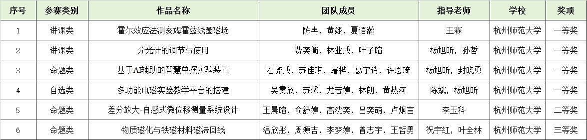 近日,第十一届全国大学生物理实验竞赛(创新)决赛在中南大学举行。来自全国331所高校的750支优秀代表队从3260支预赛队伍中脱颖而出,2000余名师生齐聚长沙,用智慧与实干演绎物理实验的创新魅力。果冻传媒 组织并指导6支队伍参赛,获一等奖4项、二等奖1项、三等奖1项,杭州师范大学代表队获优秀组织奖。