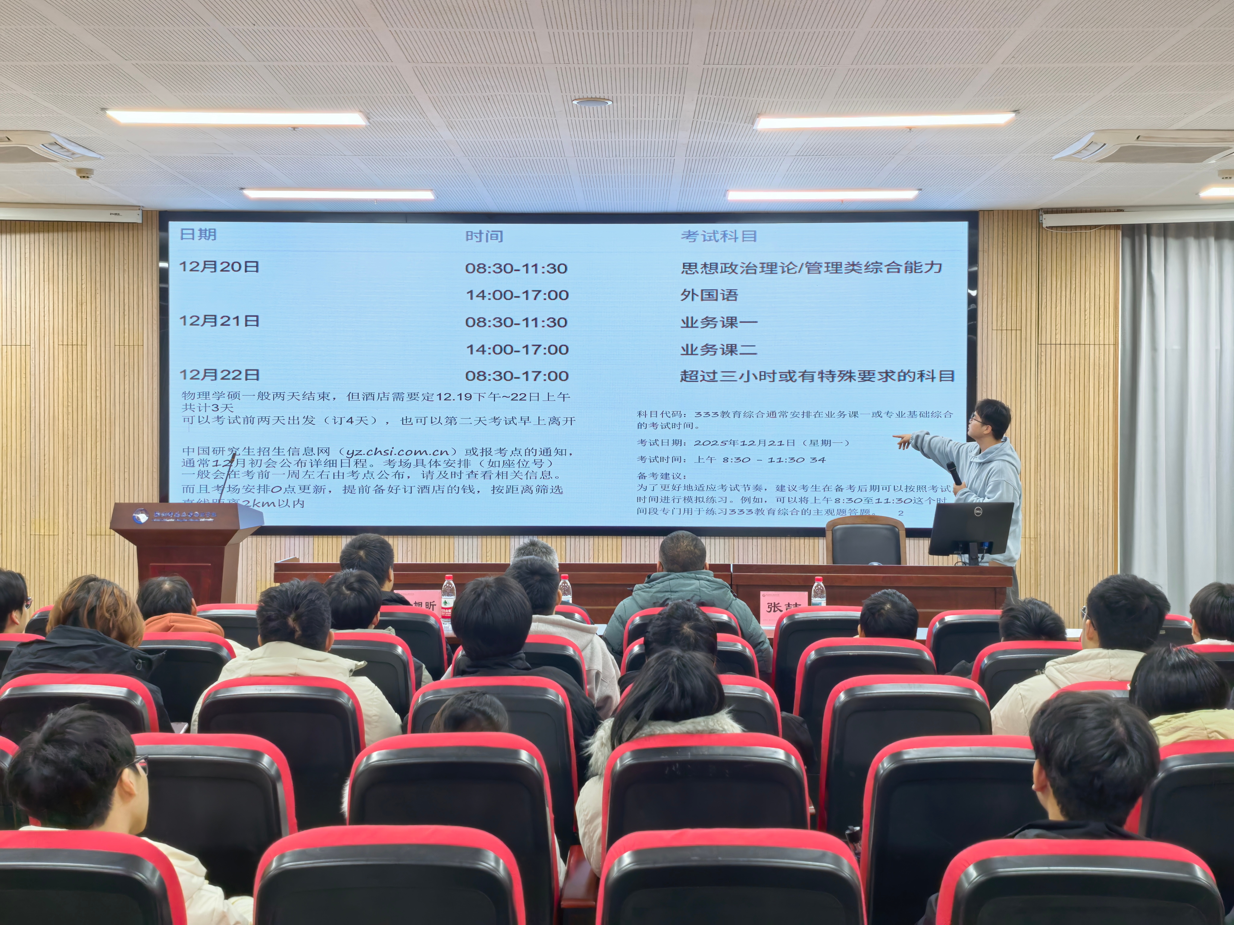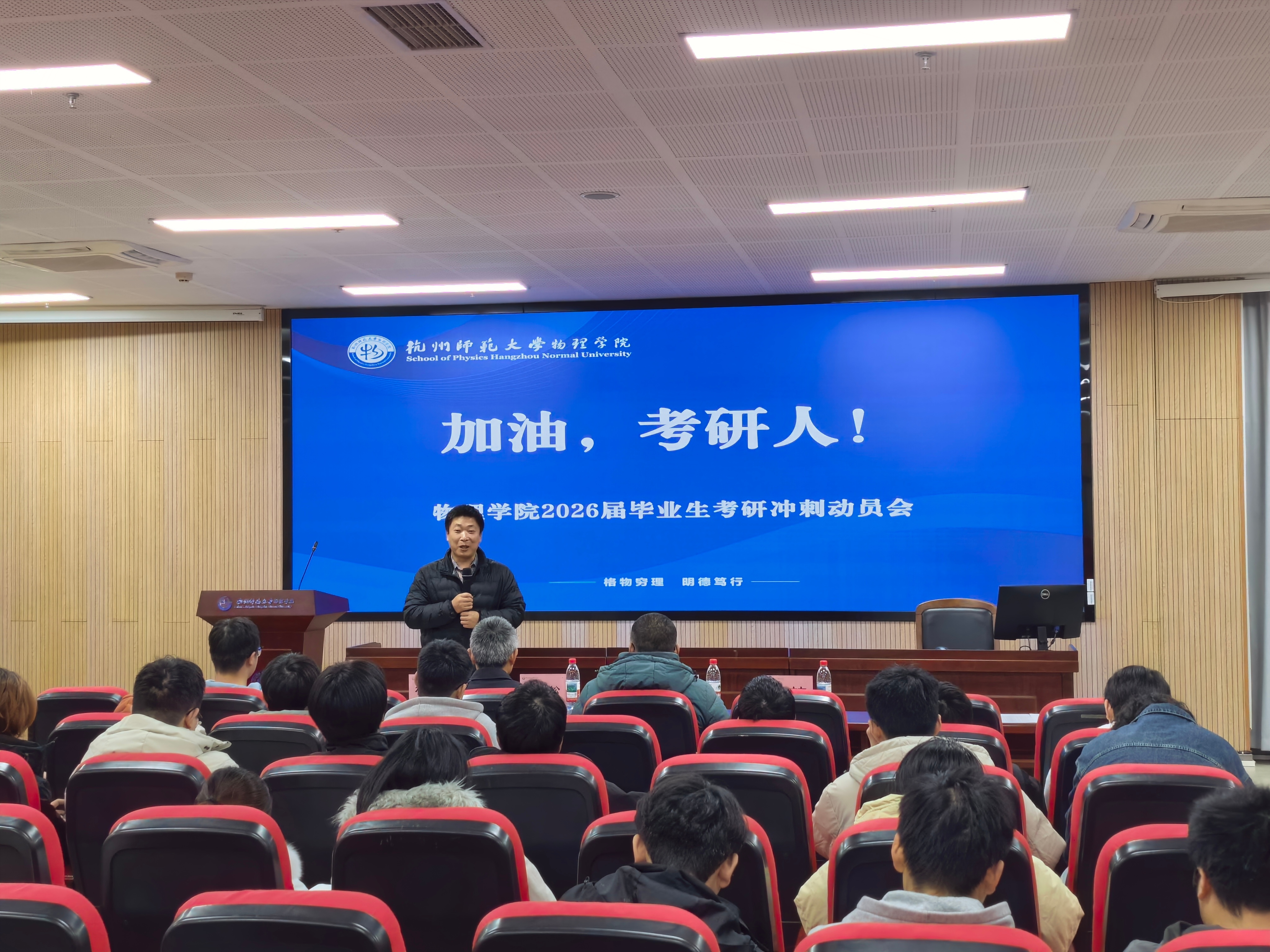 2026考研即将到来,为给考研学子加油、鼓劲,在考研冲刺阶段提升物理学子的备战信心,果冻传媒 于12月5日下午在勤19-120举办2026届毕业生考研冲刺动员大会。