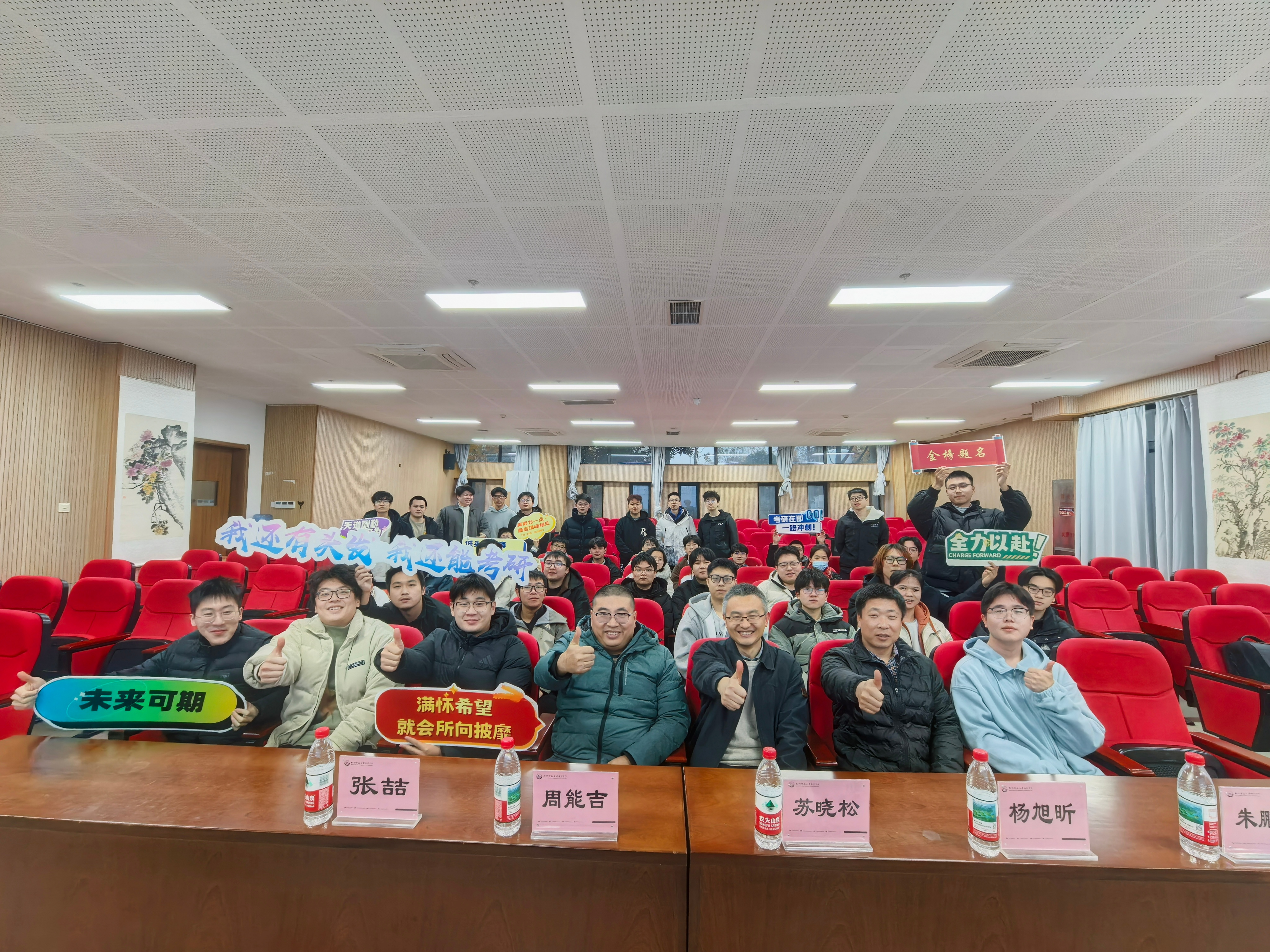 果冻传媒 党委副书记苏晓松、教工第一党支部教师周能吉、物理221班主任杨旭昕、物理学2025级研究生朱鹏晖、2026届考研同学出席大会,辅导员乔文琦主持。
