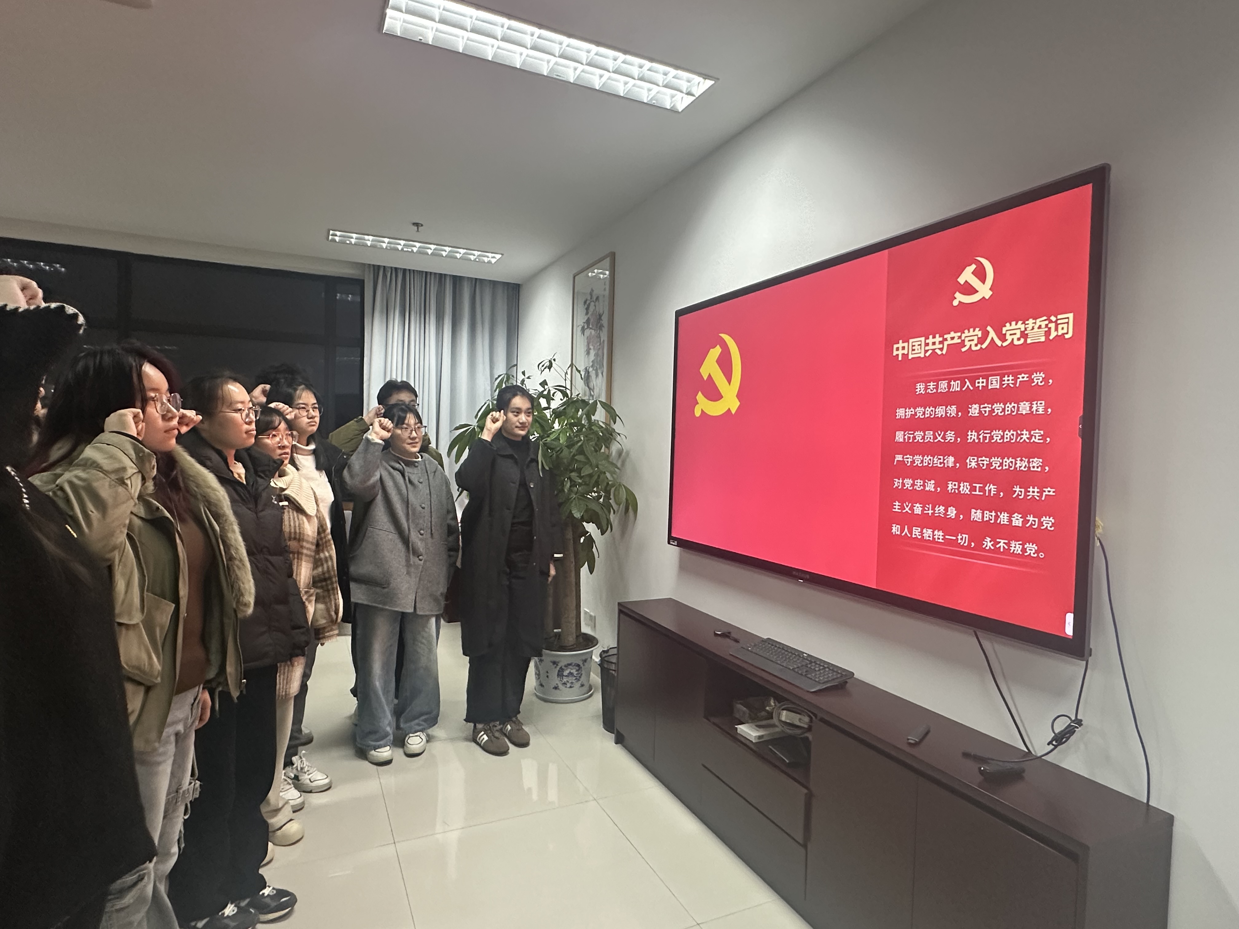 经支部讨论投票决定,通过洪思怡等6人转正为正式党员,陆心雨等4人发展为中共预备党员,由支部书记带领大家宣读中国共产党入党誓词。